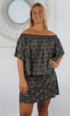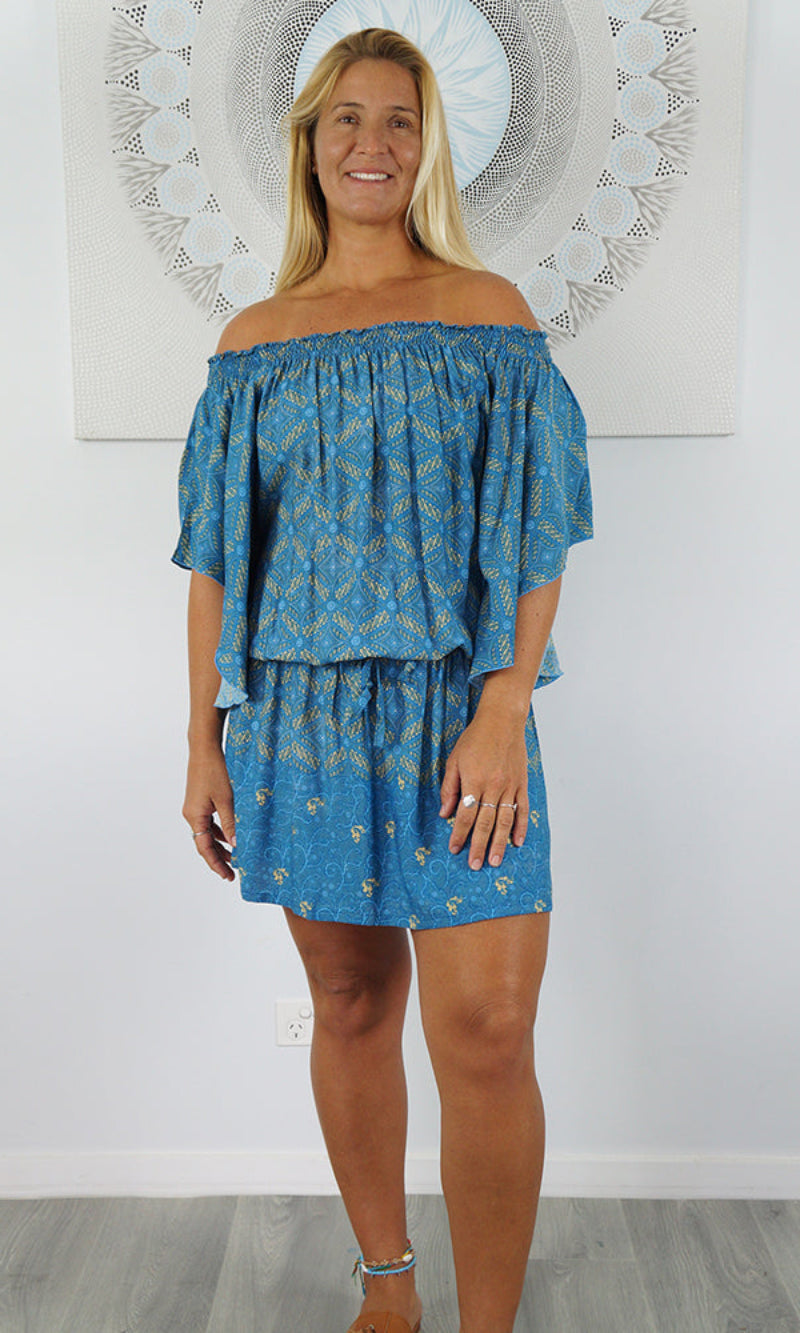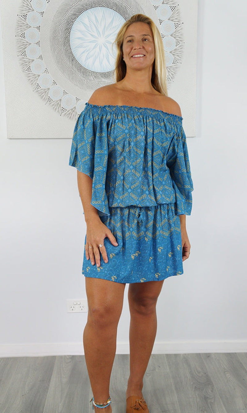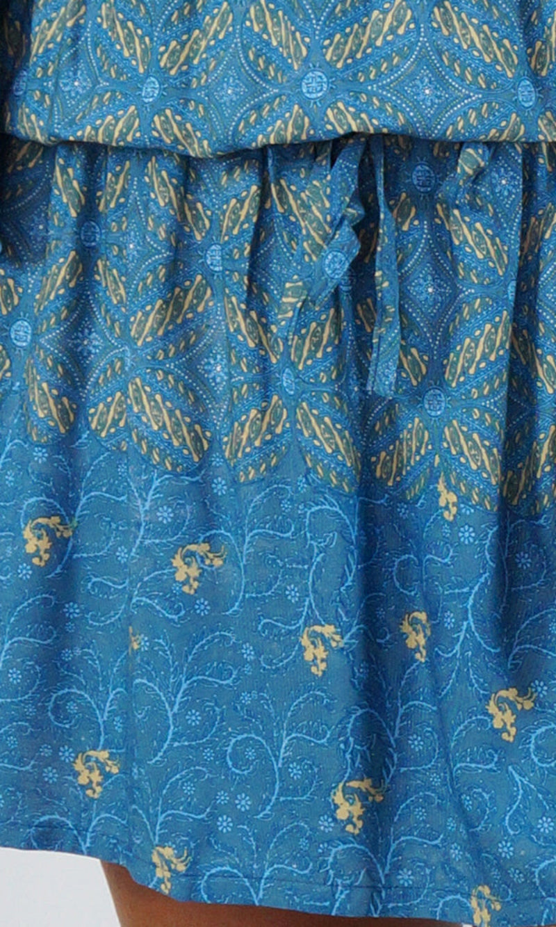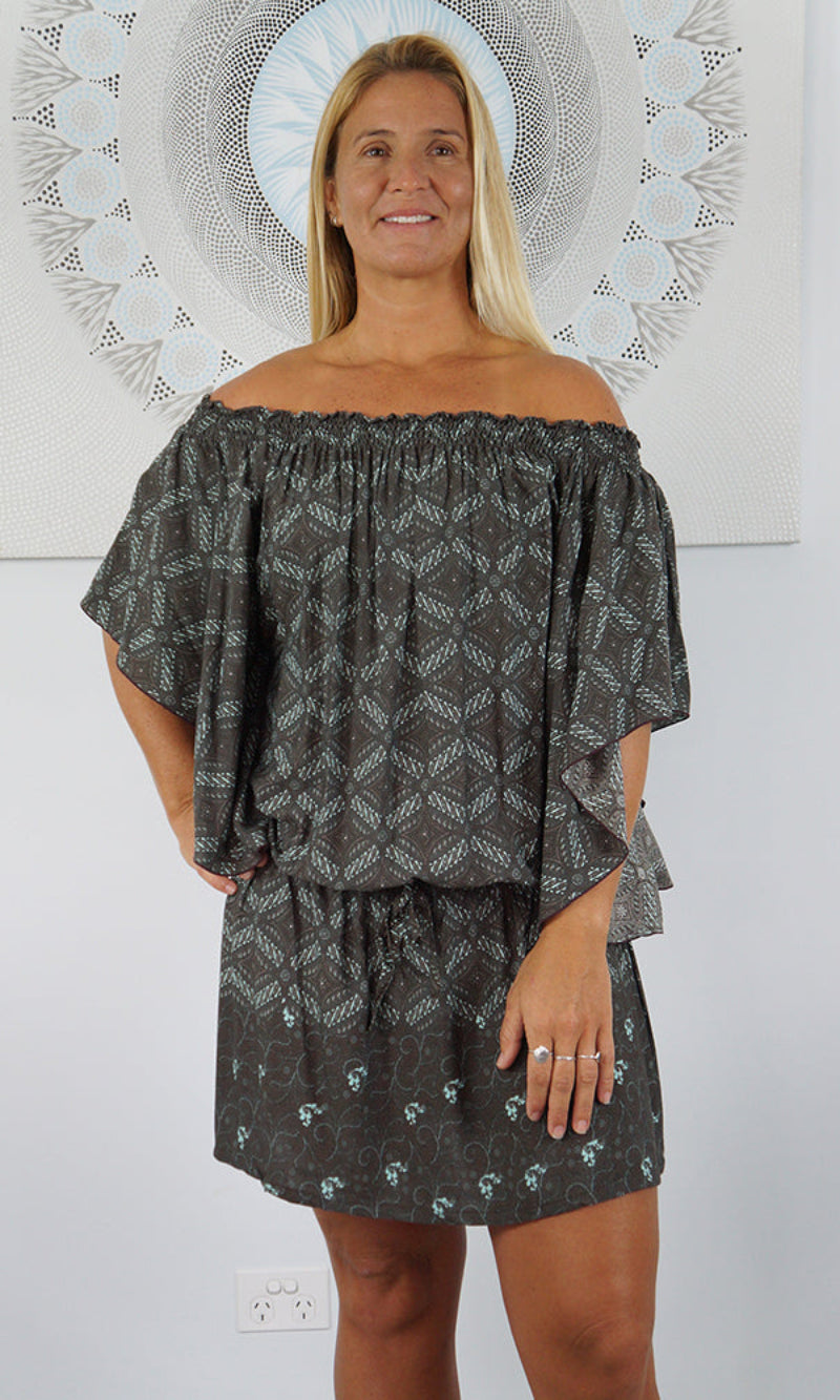 Made from a cool rayon with open sleeves and a matching fabric tie for around the waist this dress is perfect for summer.