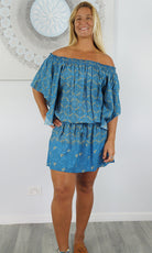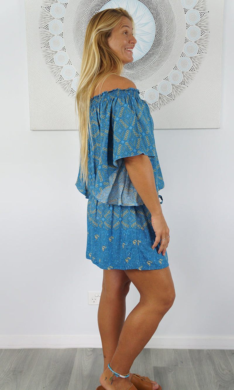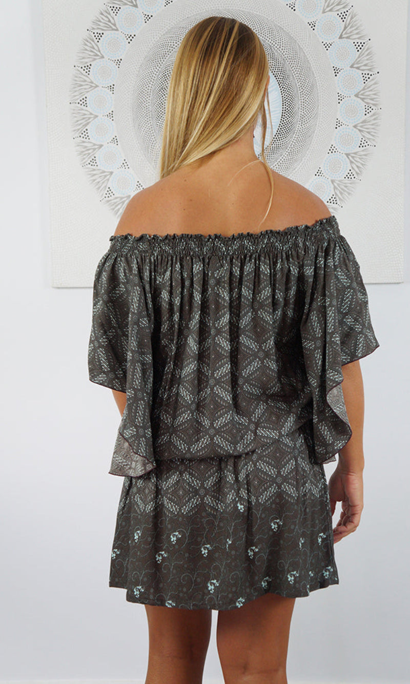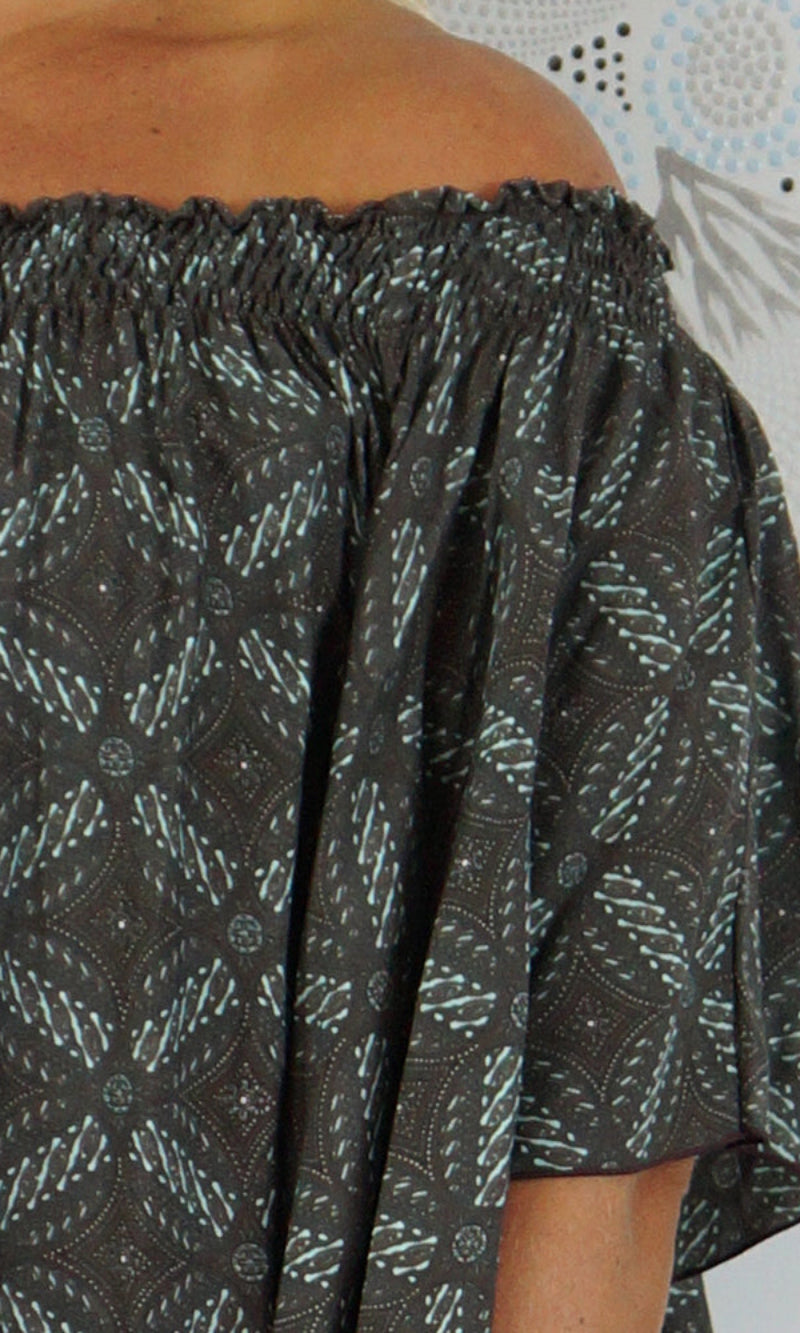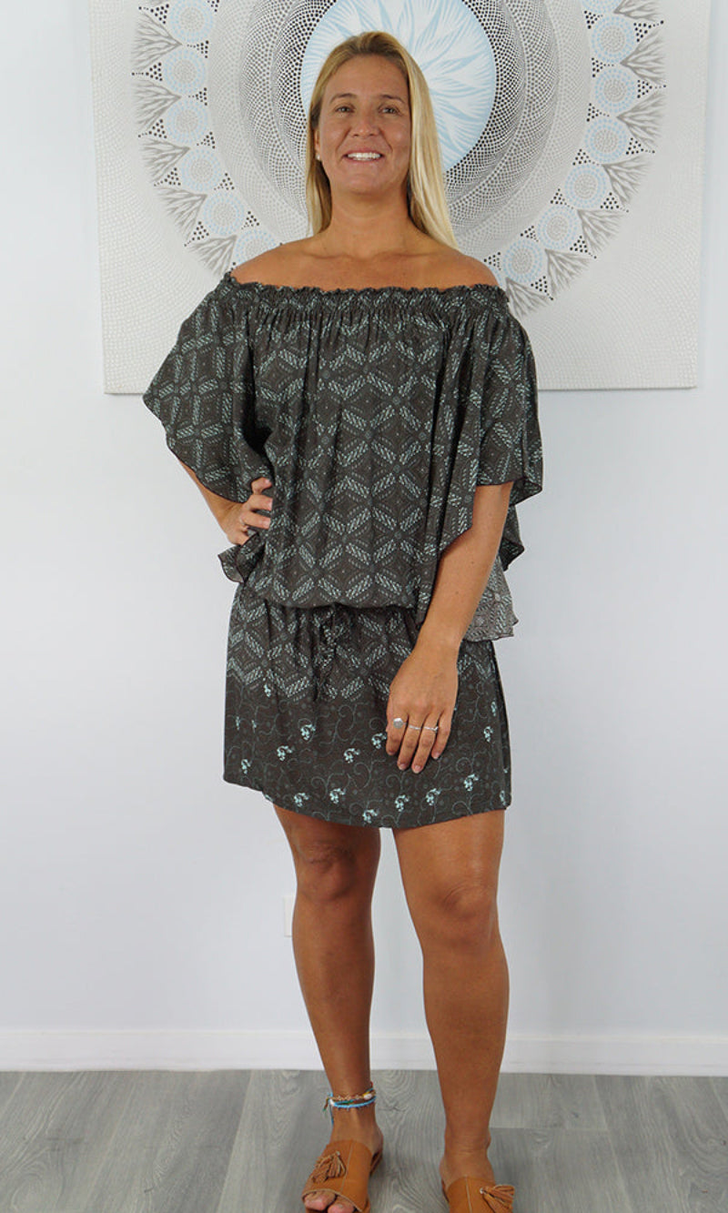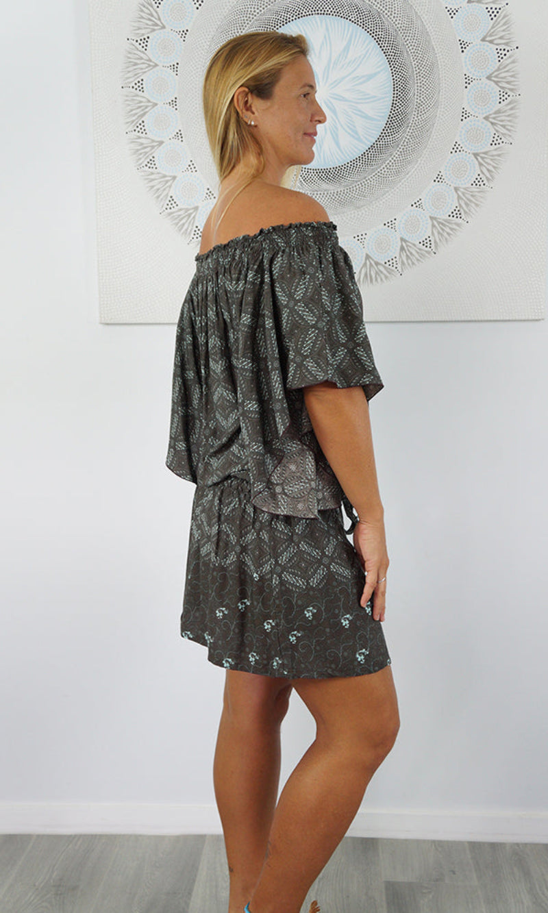 Made from a cool rayon with open sleeves and a matching fabric tie for around the waist this dress is perfect for summer.
