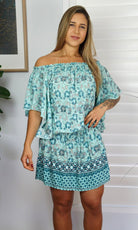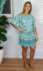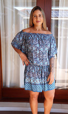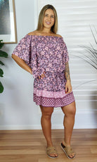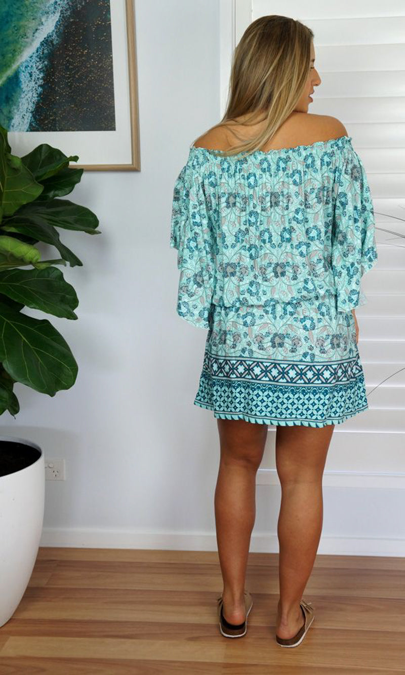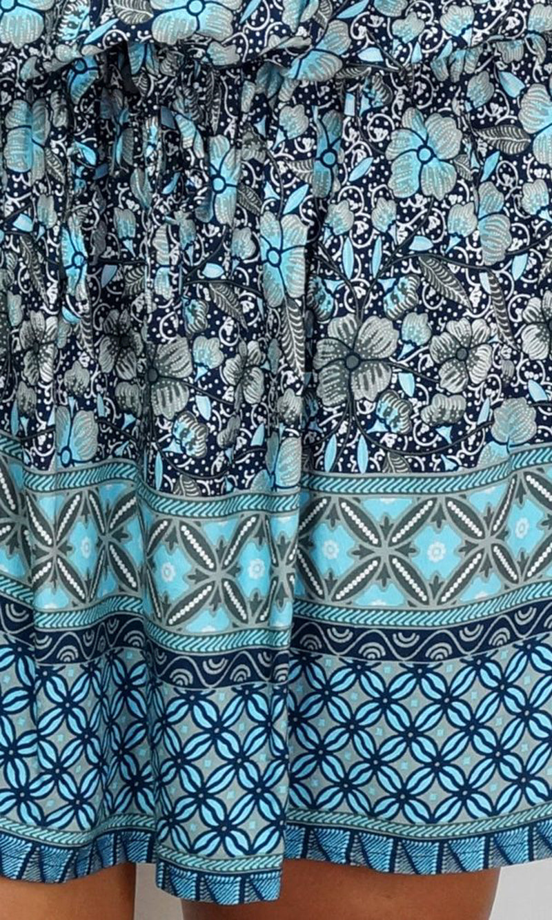 Made from a cool rayon with open sleeves and a matching fabric tie for around the waist this dress is perfect for summer.