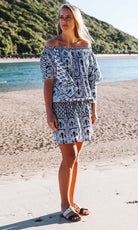 Made from a cool rayon with open sleeves and a matching fabric tie for around the waist this dress is perfect for summer.