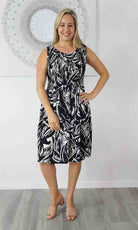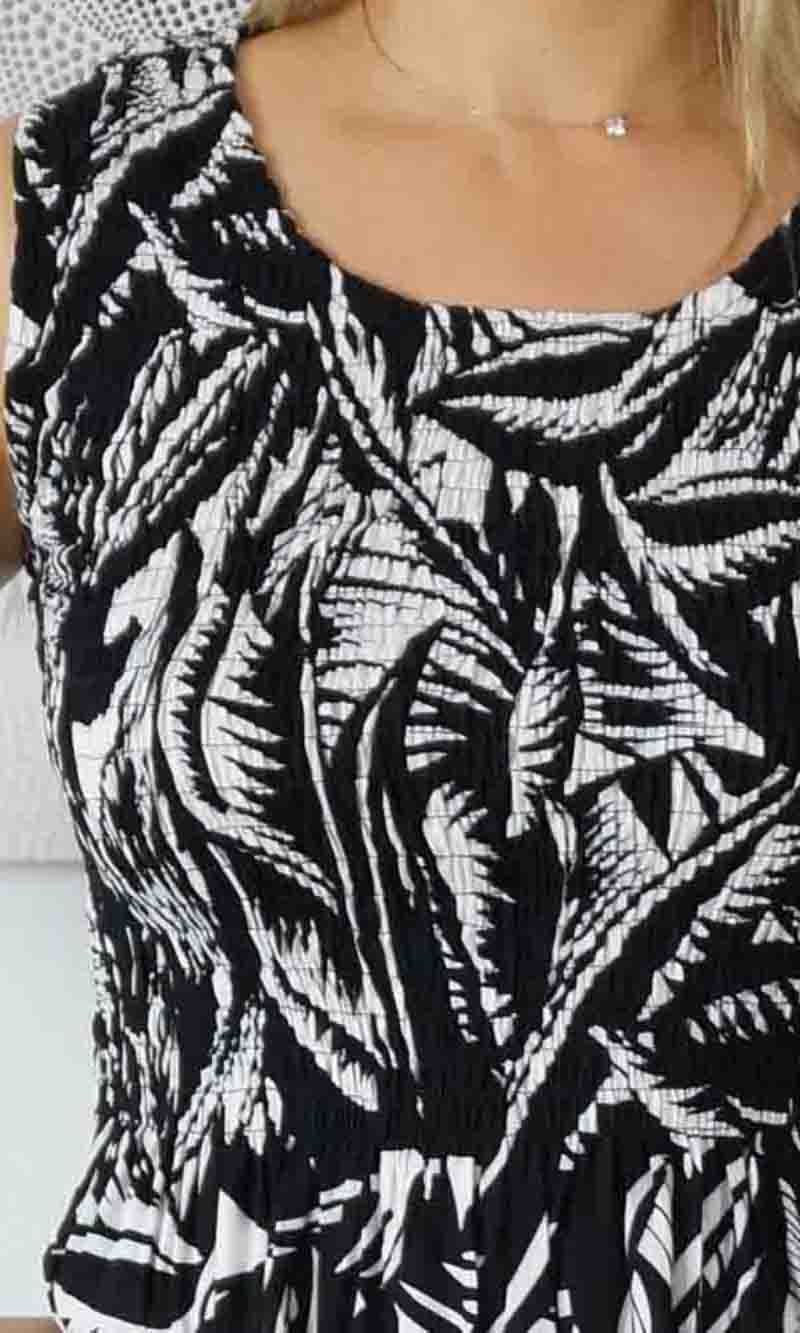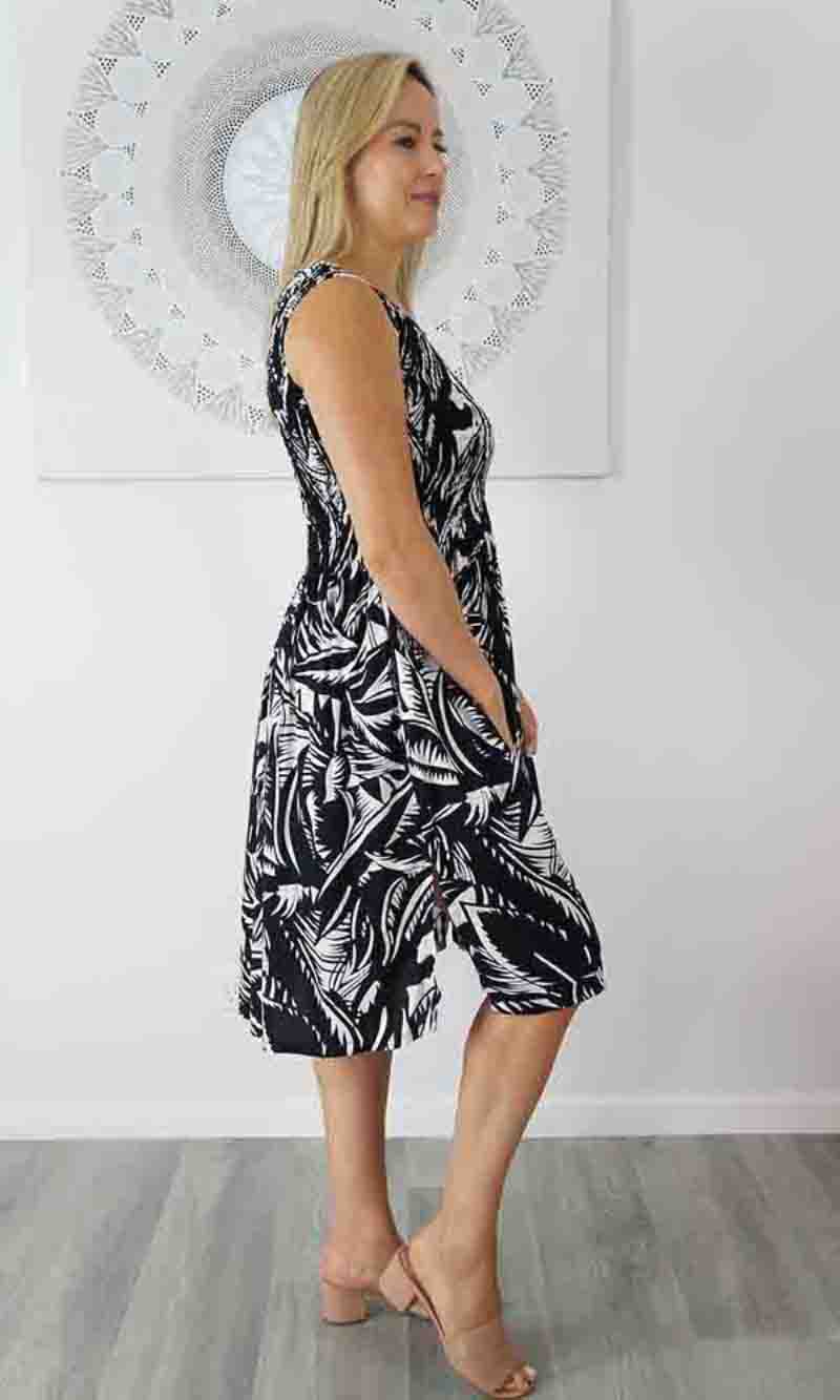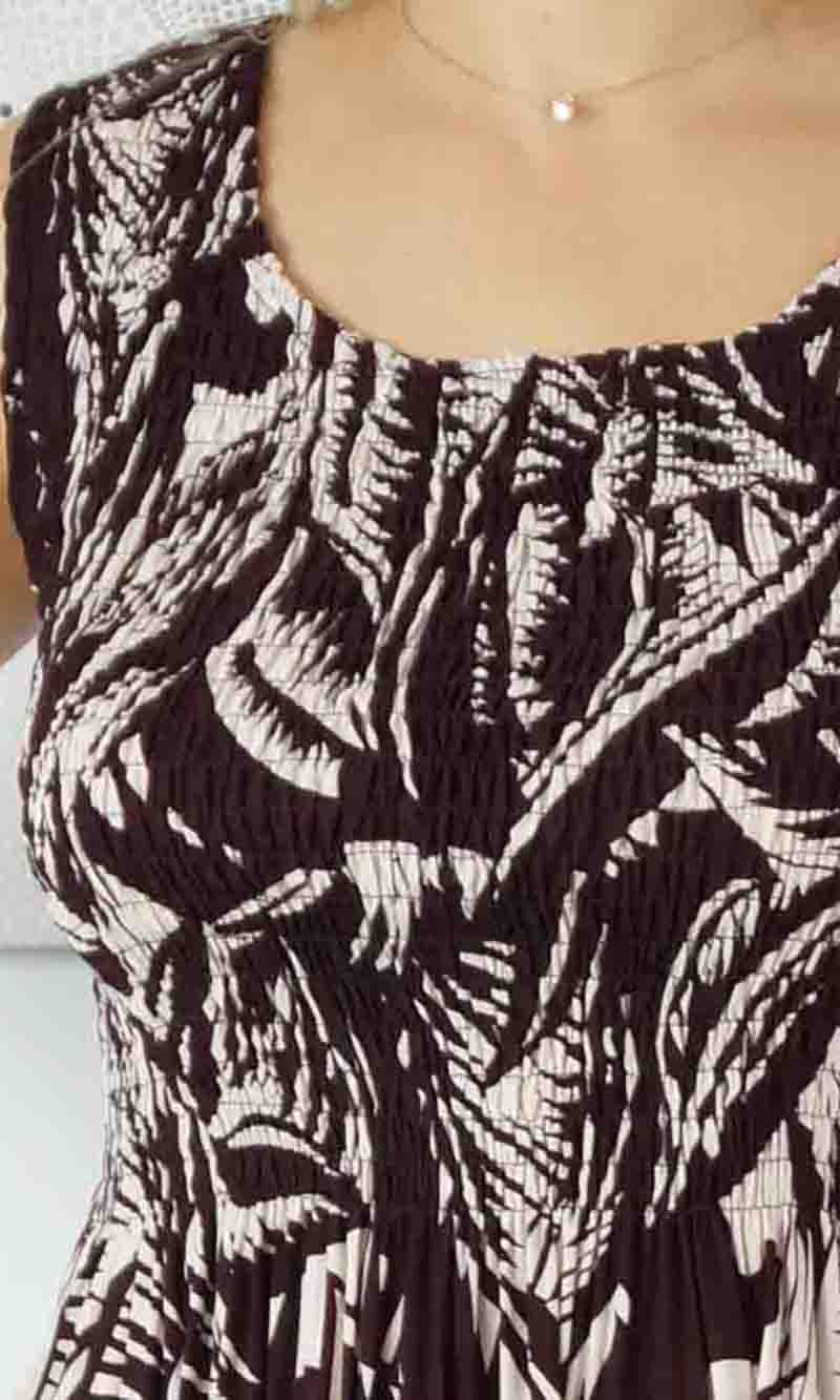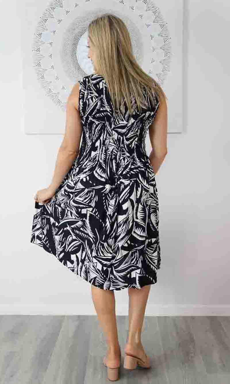 Abstract Leaf design singlet shirring dress. To suit most sizes 8-18. Lovely and cool rayon fabric.