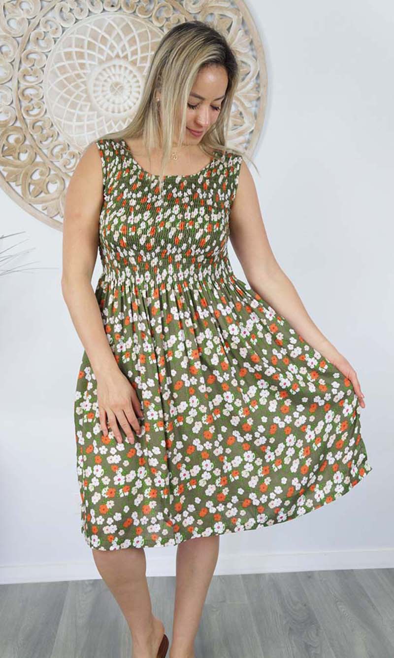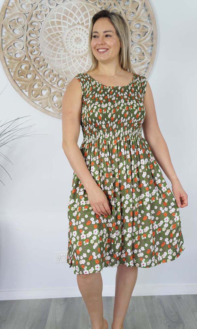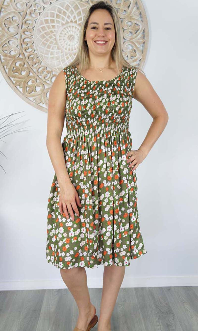 Rayon Dress Singlet Smock Patchouli Olive