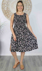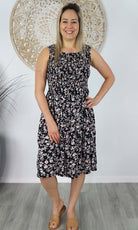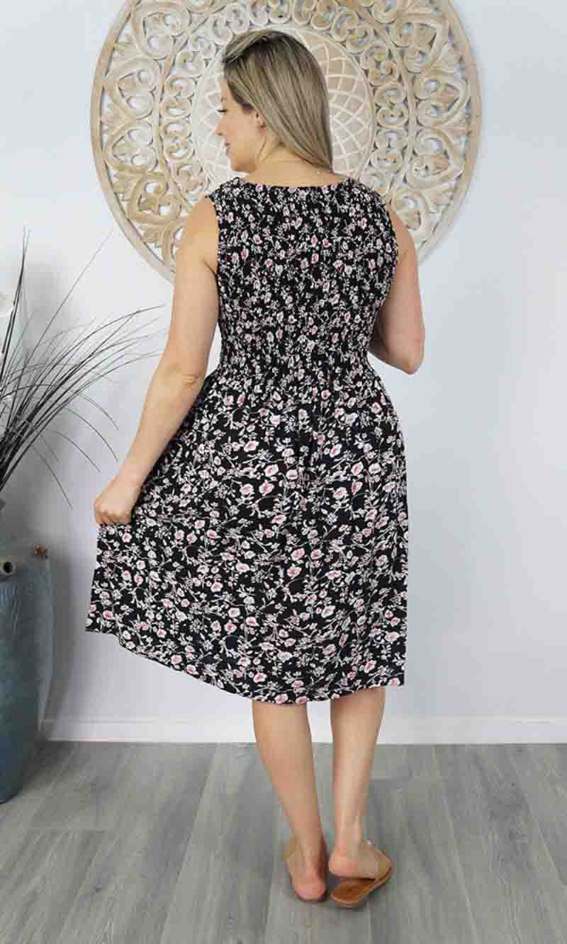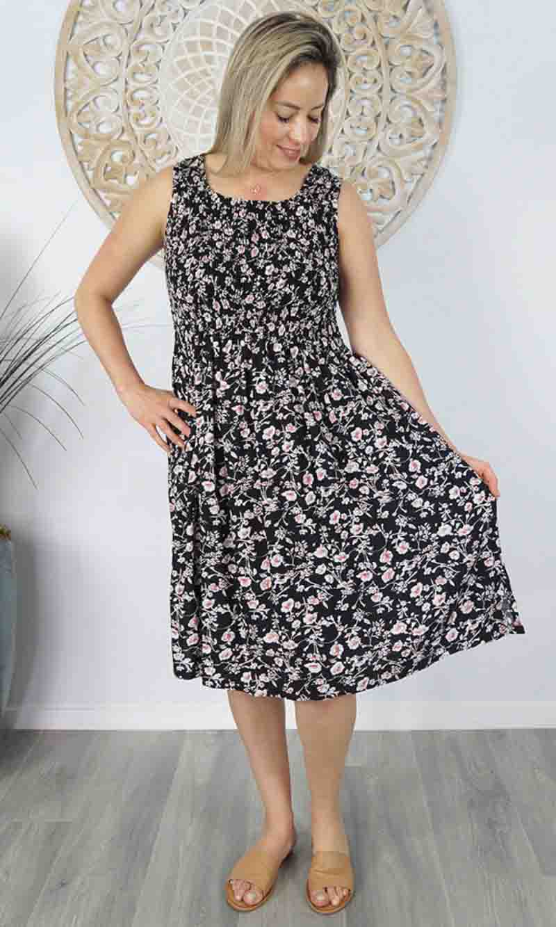 Abstract design singlet shirring dress. To suit most sizes 8-18. Lovely and cool rayon fabric.