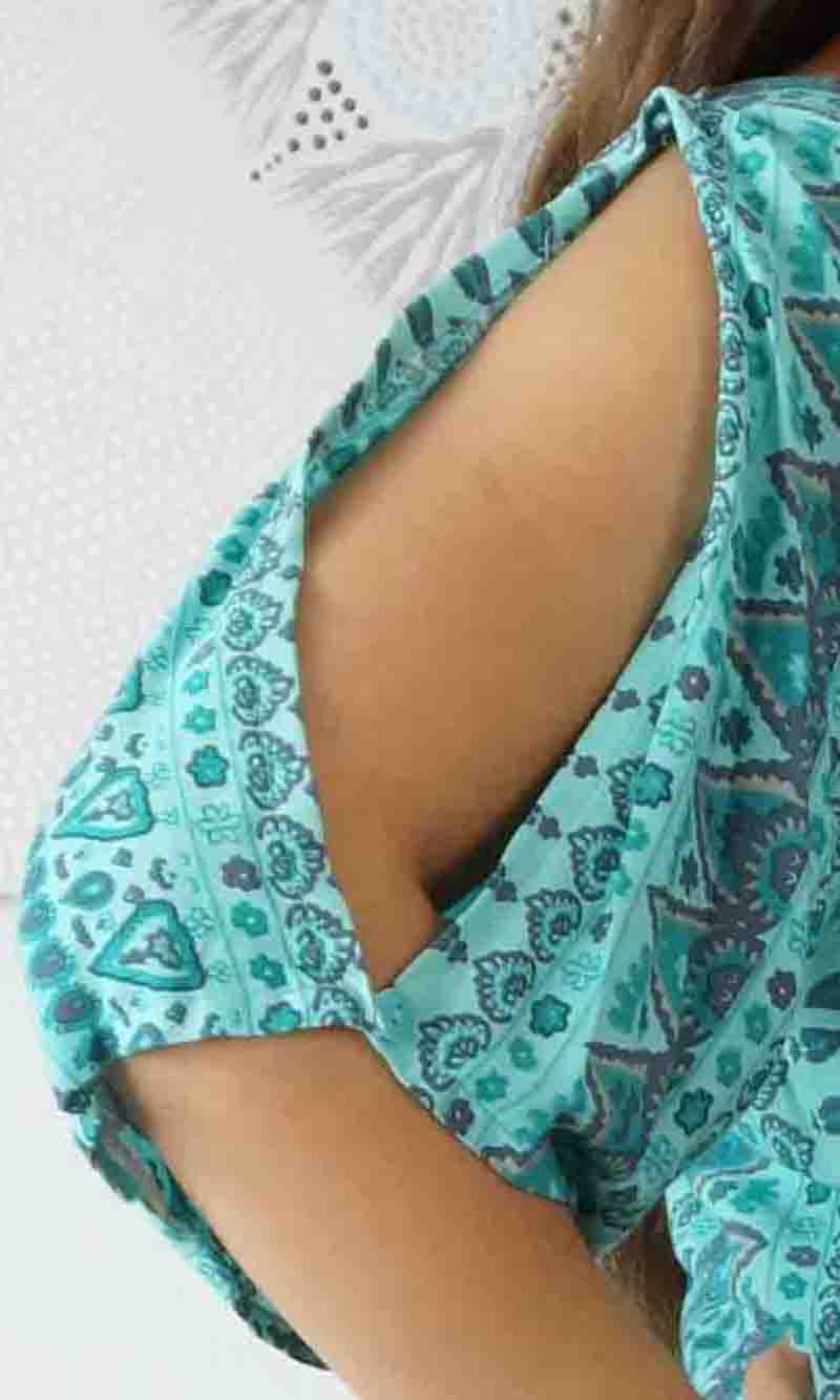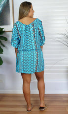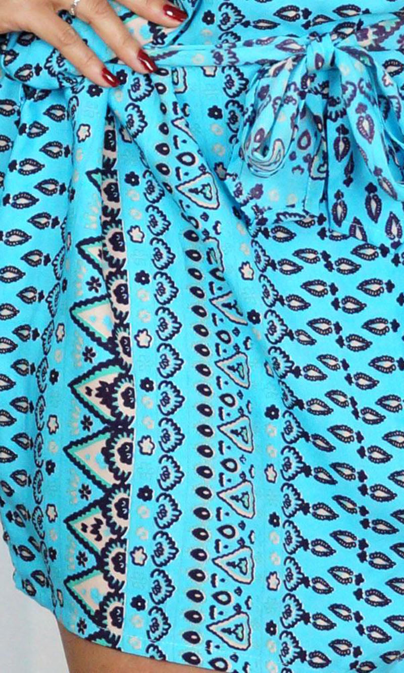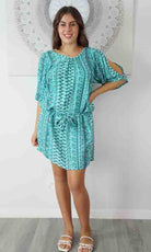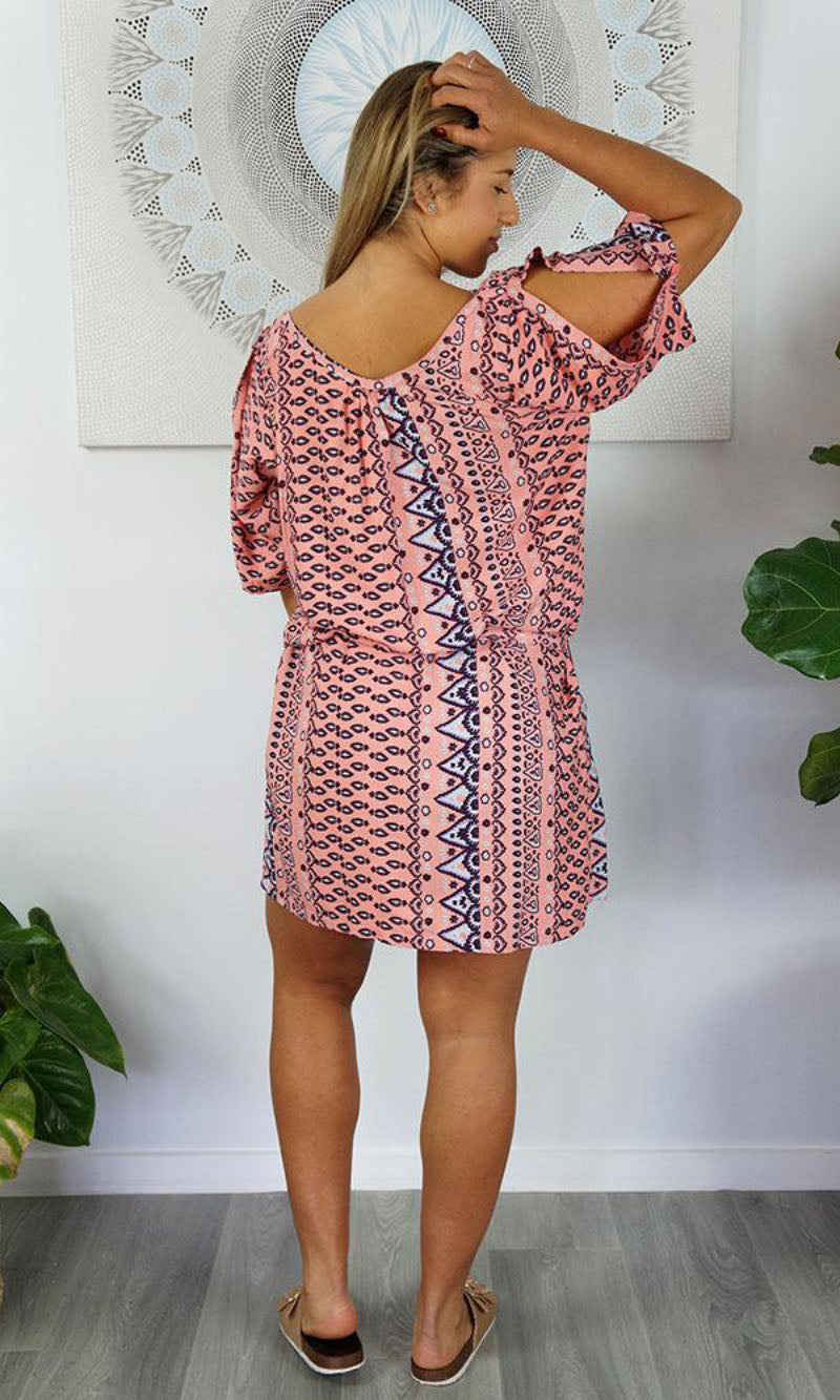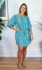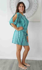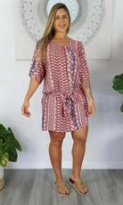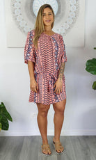 Made from a cool rayon with open sleeves and a matching fabric tie for around the waist this dress is perfect for summer.