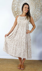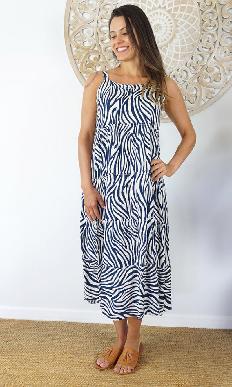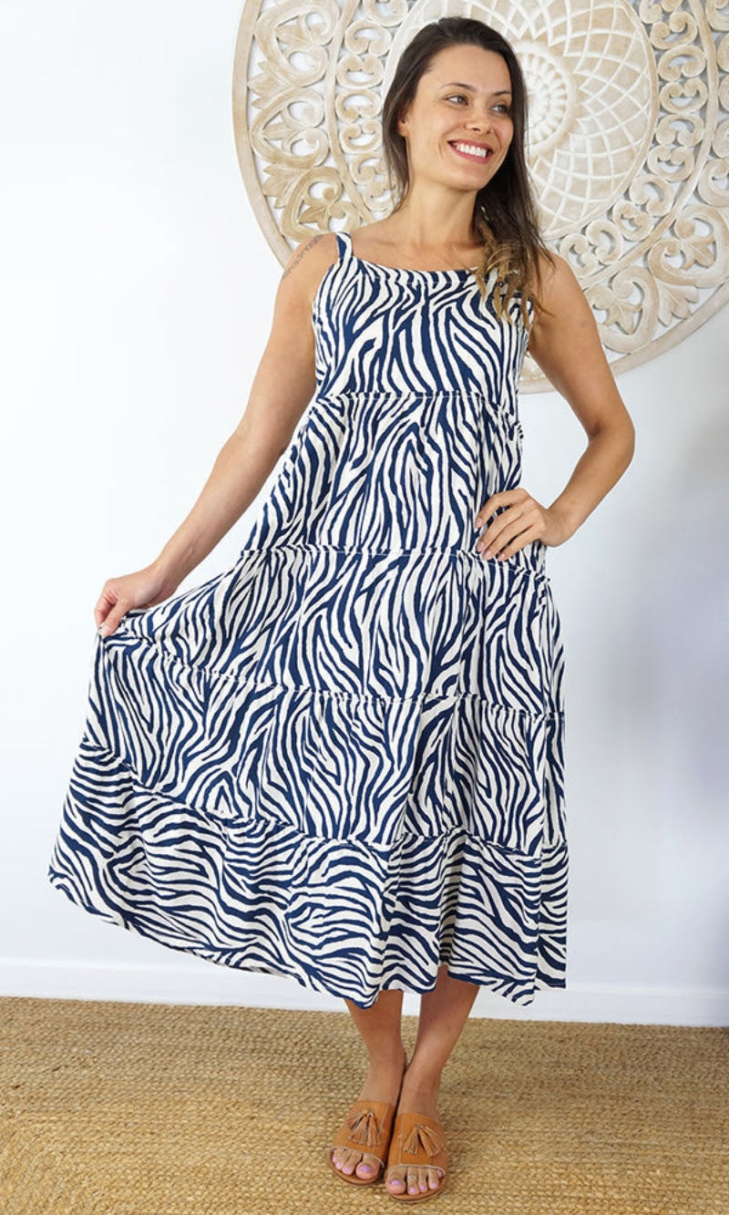 The Twiggy dress is a classic summer style. Made from our soft cool rayon along with adjustable straps and a elastic across the back which gives a hugging feel when worn. Panelled body is an added feature for the Twiggy Dress.