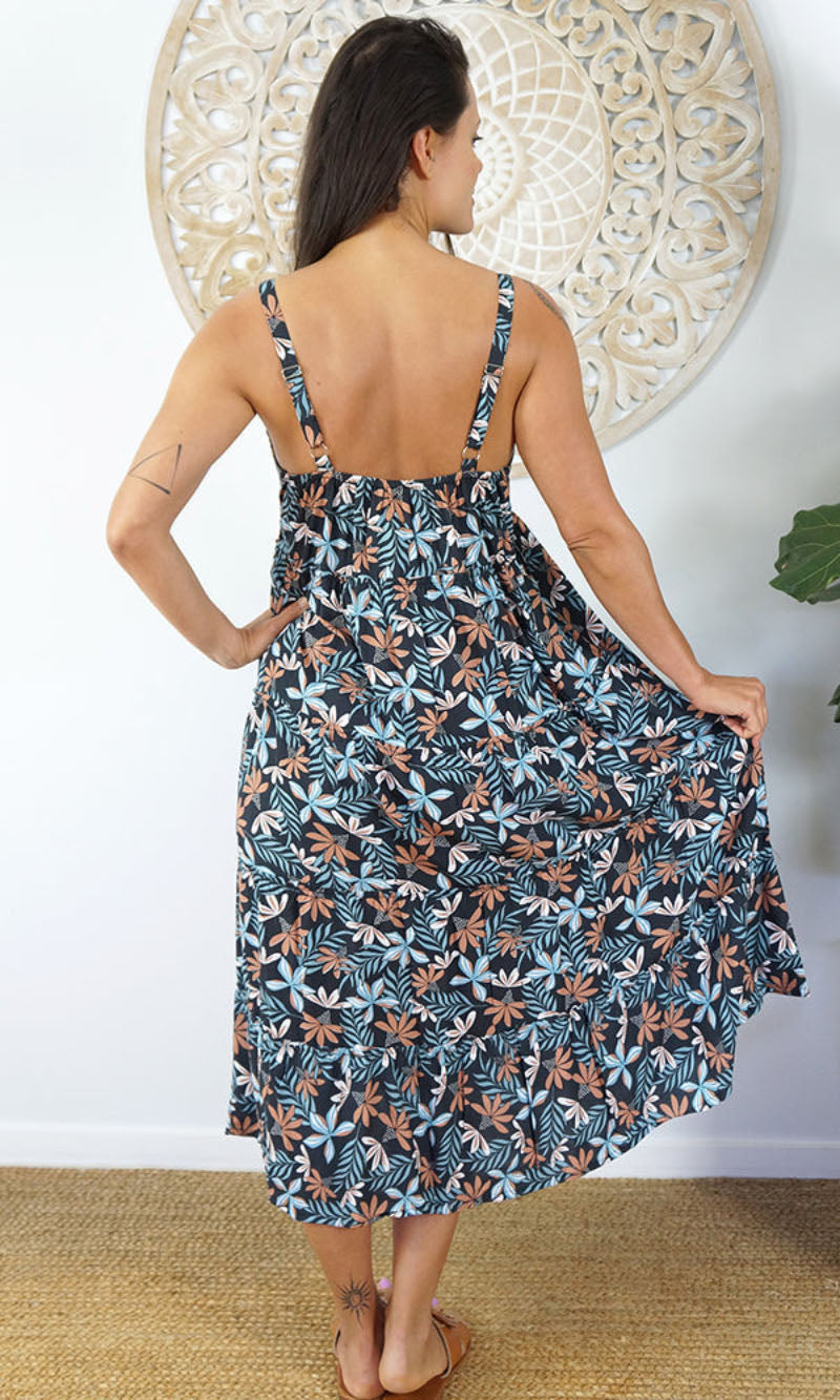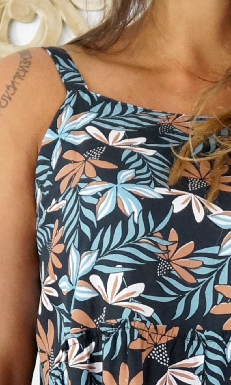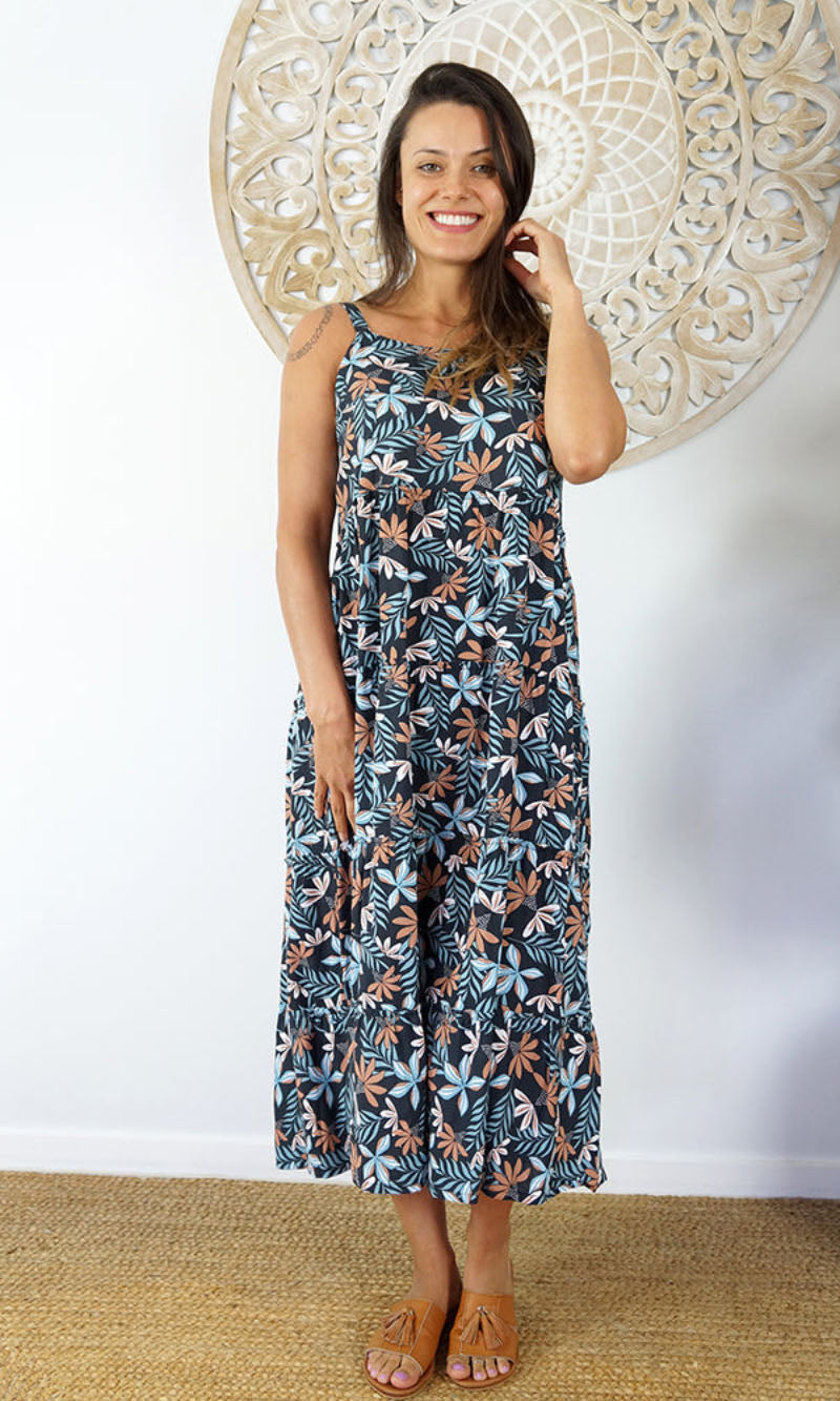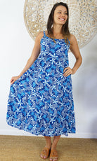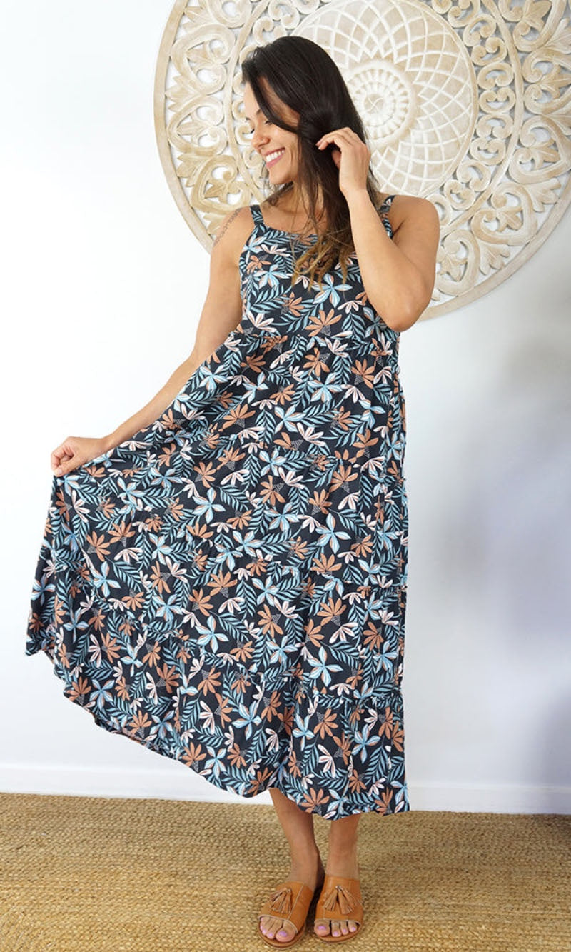 The Twiggy dress is a classic summer style.  Made from our soft cool rayon along with adjustable straps and a elastic across the back which gives a hugging feel when worn. Panelled body is an added feature for the Twiggy Dress.