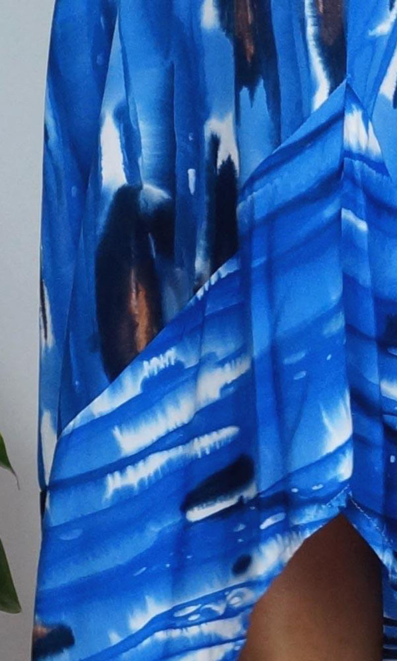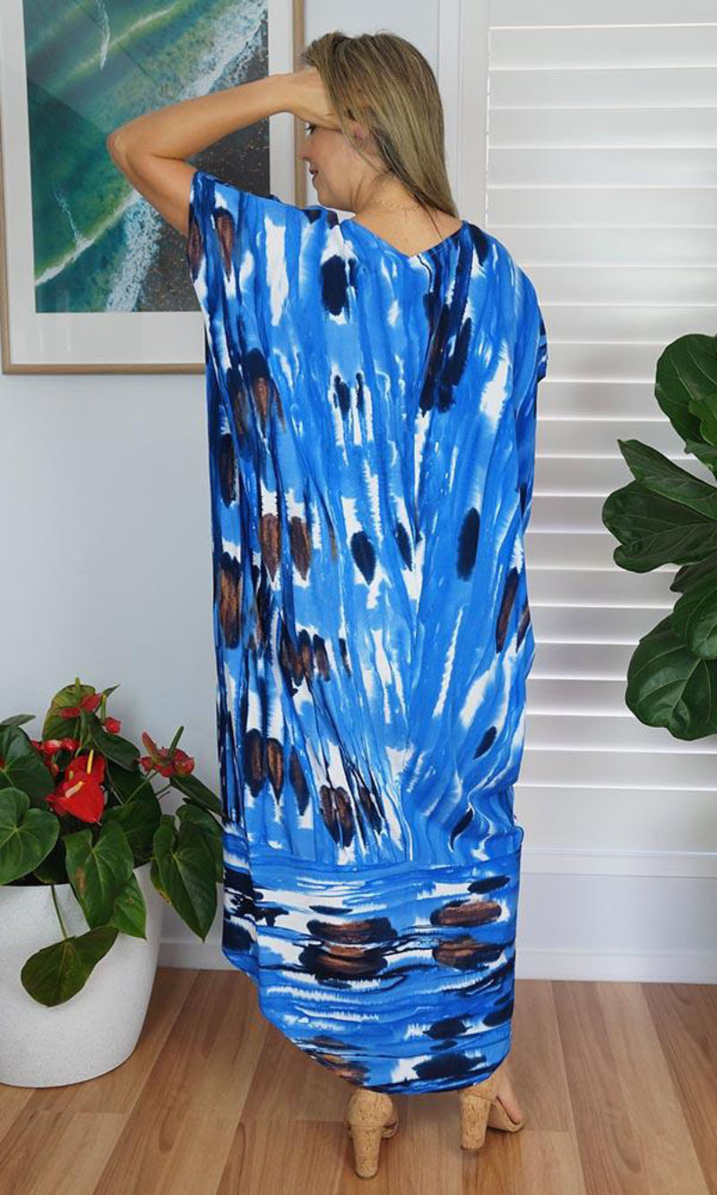 Rayon Kaftan Frilled Toga Streaky Tie Dye Blue