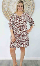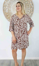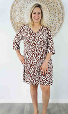 Made from rayon, this casual 3/4 sleeve tunic is great for around the pool or at the beach.