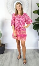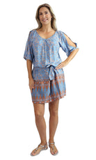 The Hayman Dress is a cool, calm, cold shoulder resort style garment. Made from soft rayon, and a matching fabric belt this can be worn as a dress or tunic over swimwear. Perfect addition to your summer collection!