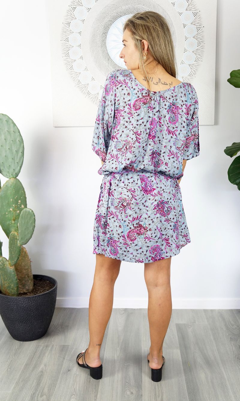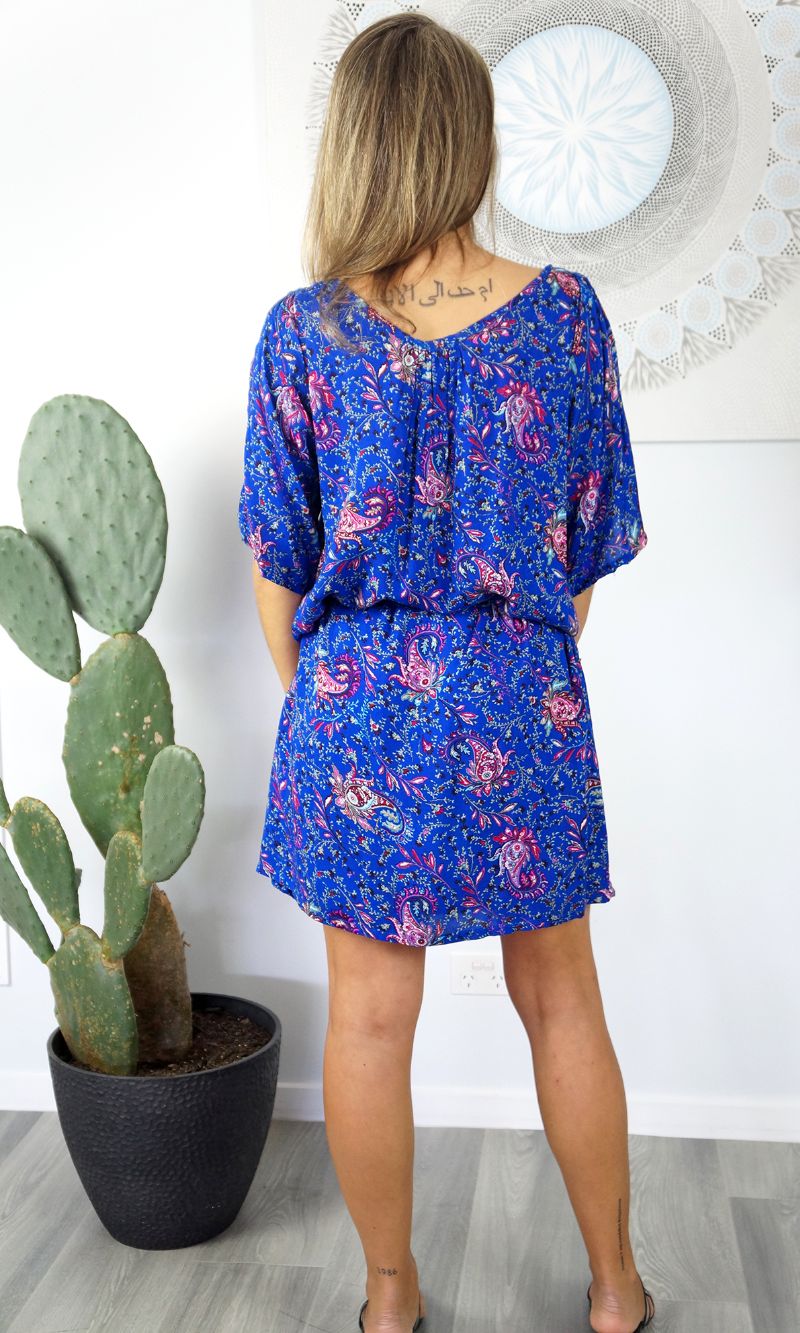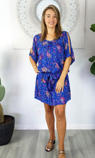 The Hayman Dress is a cool, calm, cold shoulder resort style garment. Made from soft rayon, and a matching fabric belt this can be worn as a dress or tunic over swimwear. Perfect addition to your summer collection!