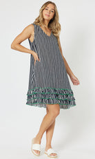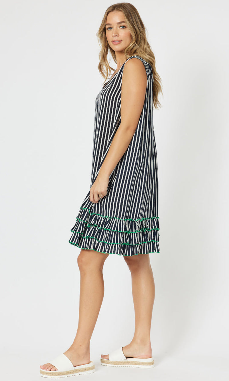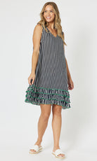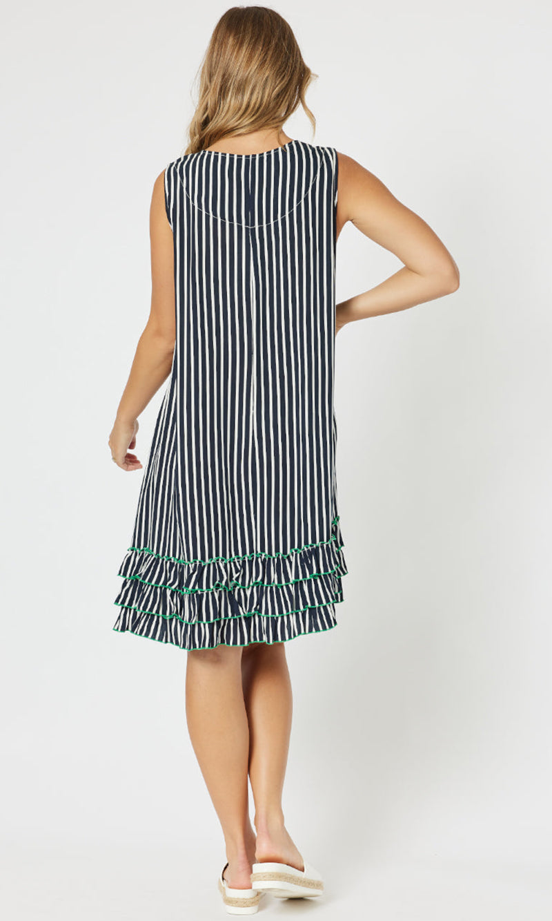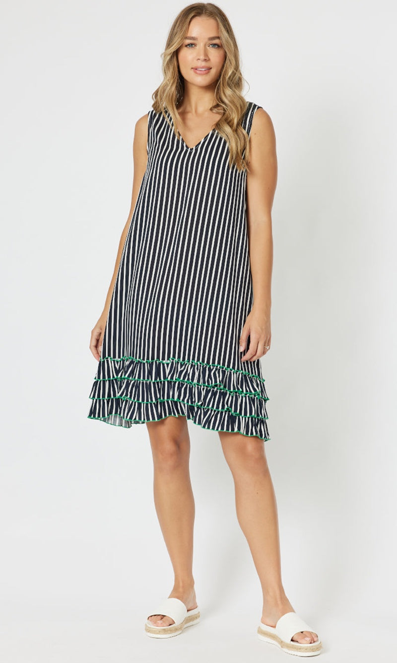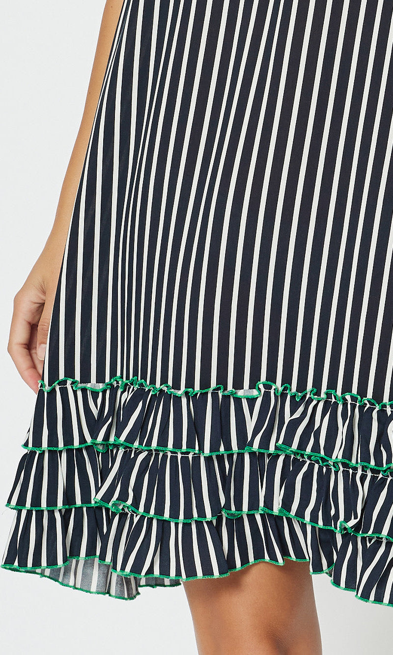 Viscose Stripe Frill Hem Dress
