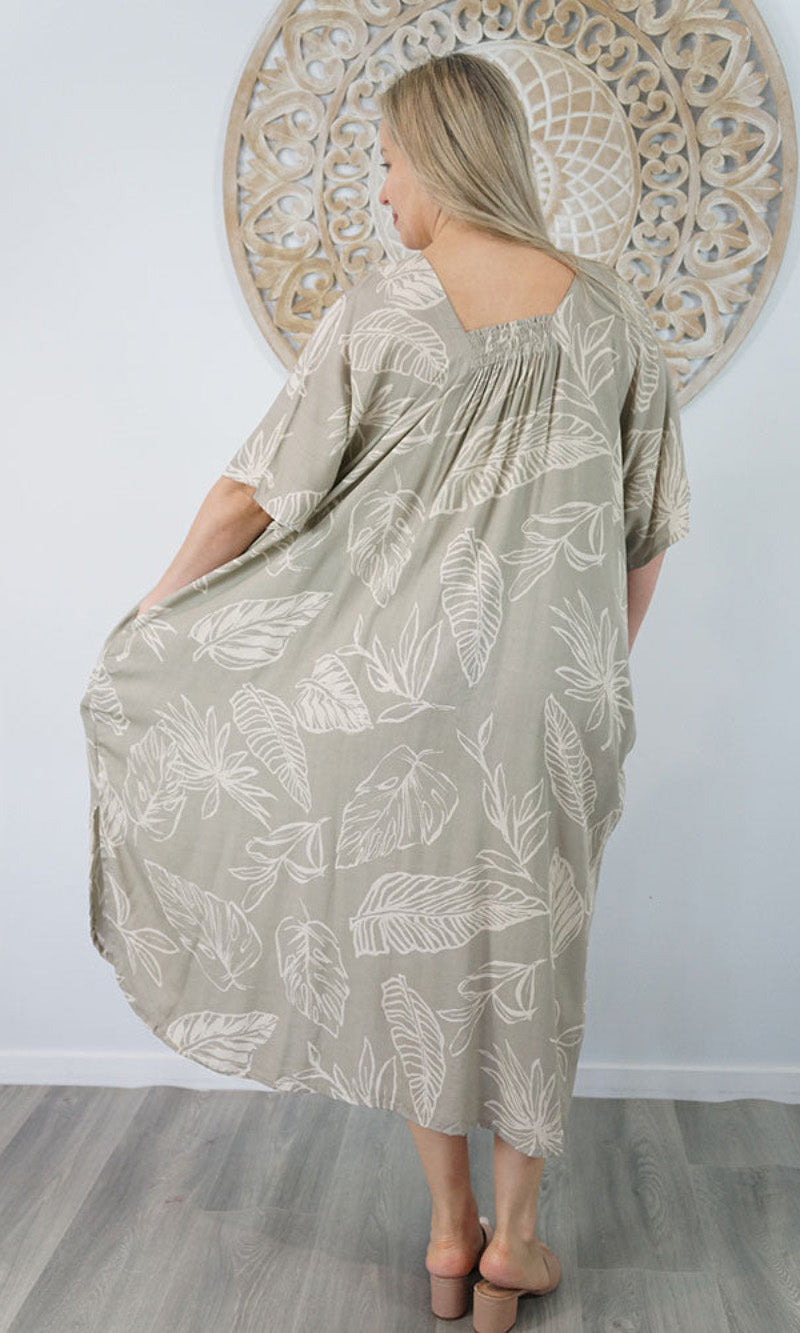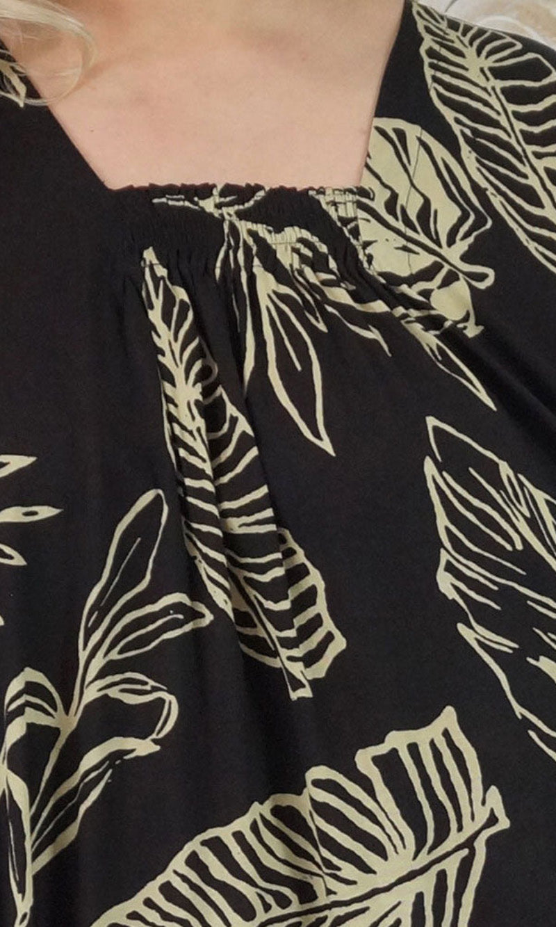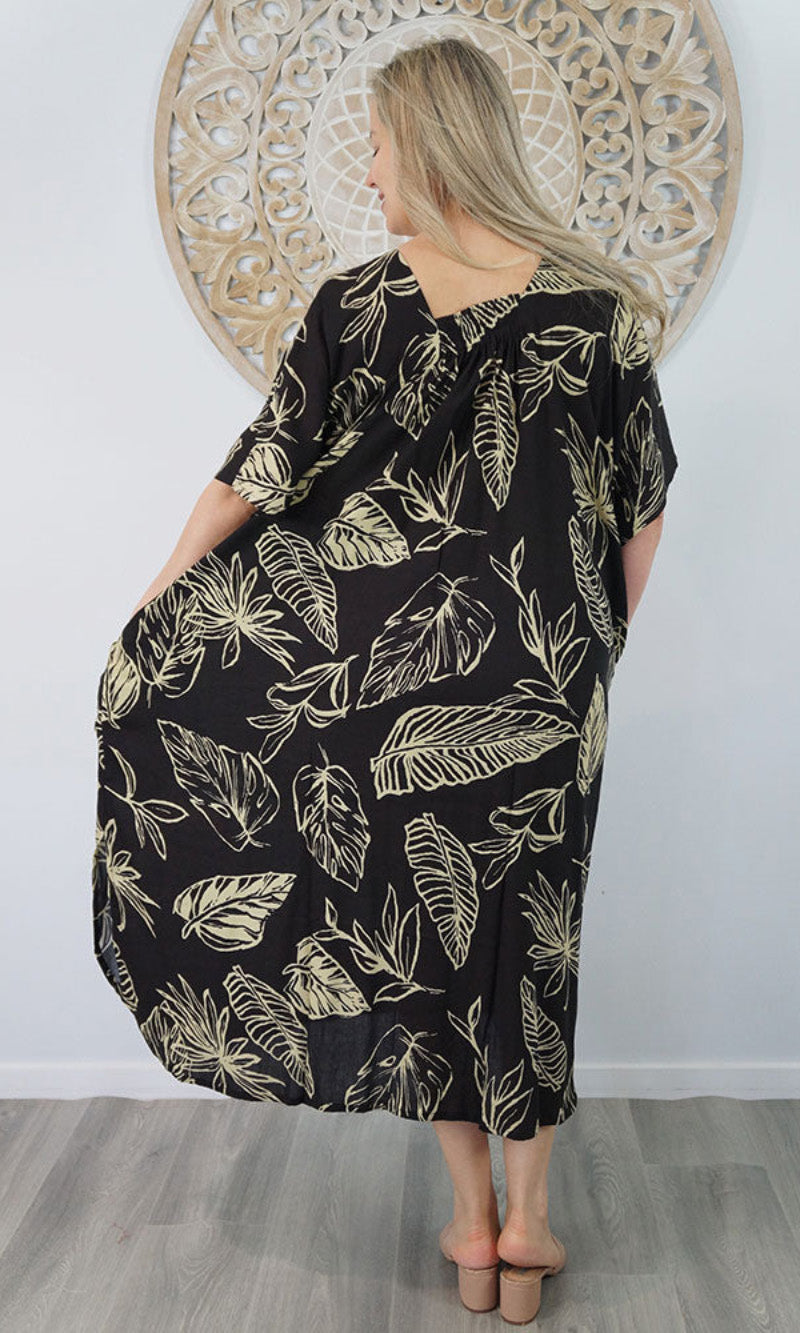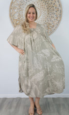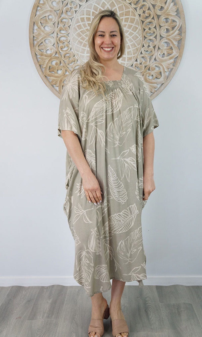 Introducing the Bermuda Kaftan in our "Kerala" print. This is a long, plus size kaftan featuring front shirring, side pockets and splits.