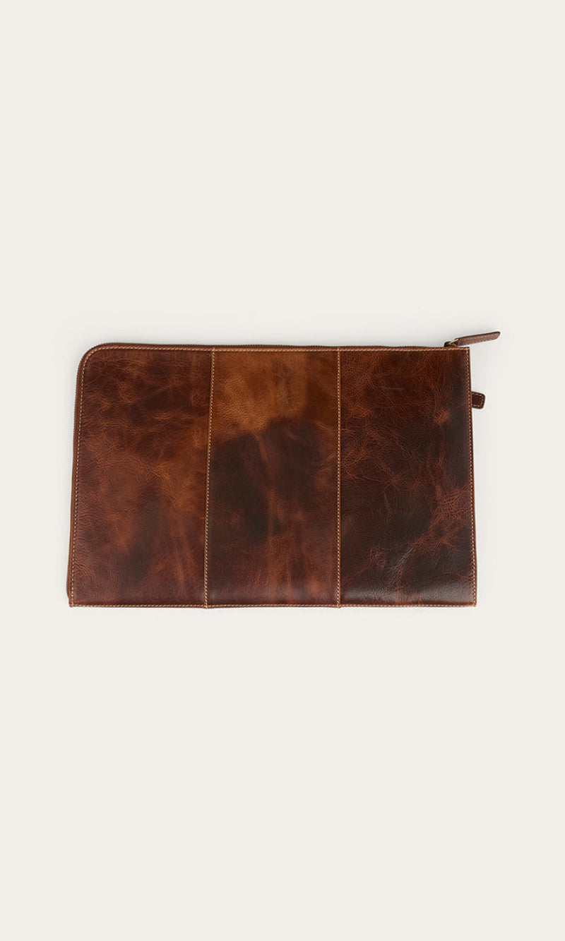 A convenient business companion, the Toto Cita securely stores a lap top and documents as well as keeping cards and pens conveniently organised. Brass hardware and contrast stitching complement this refined and versatile accessory.
