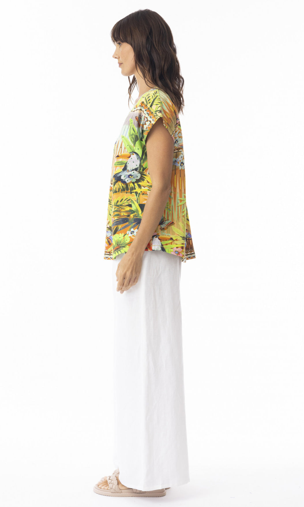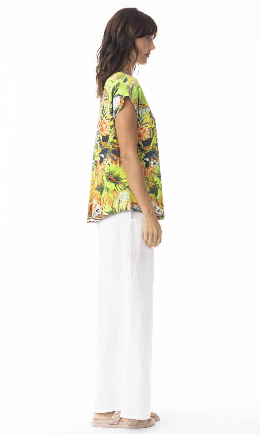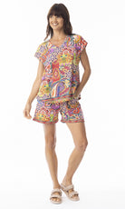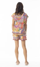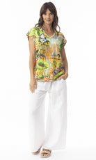 Fall in love with the breathtaking T-shirt Boxy Top, showcasing beautiful prints. This top features a flattering V-neck, comfortable short sleeves, and a modern boxy shape for a wonderfully relaxed fit, perfect for effortless charm.