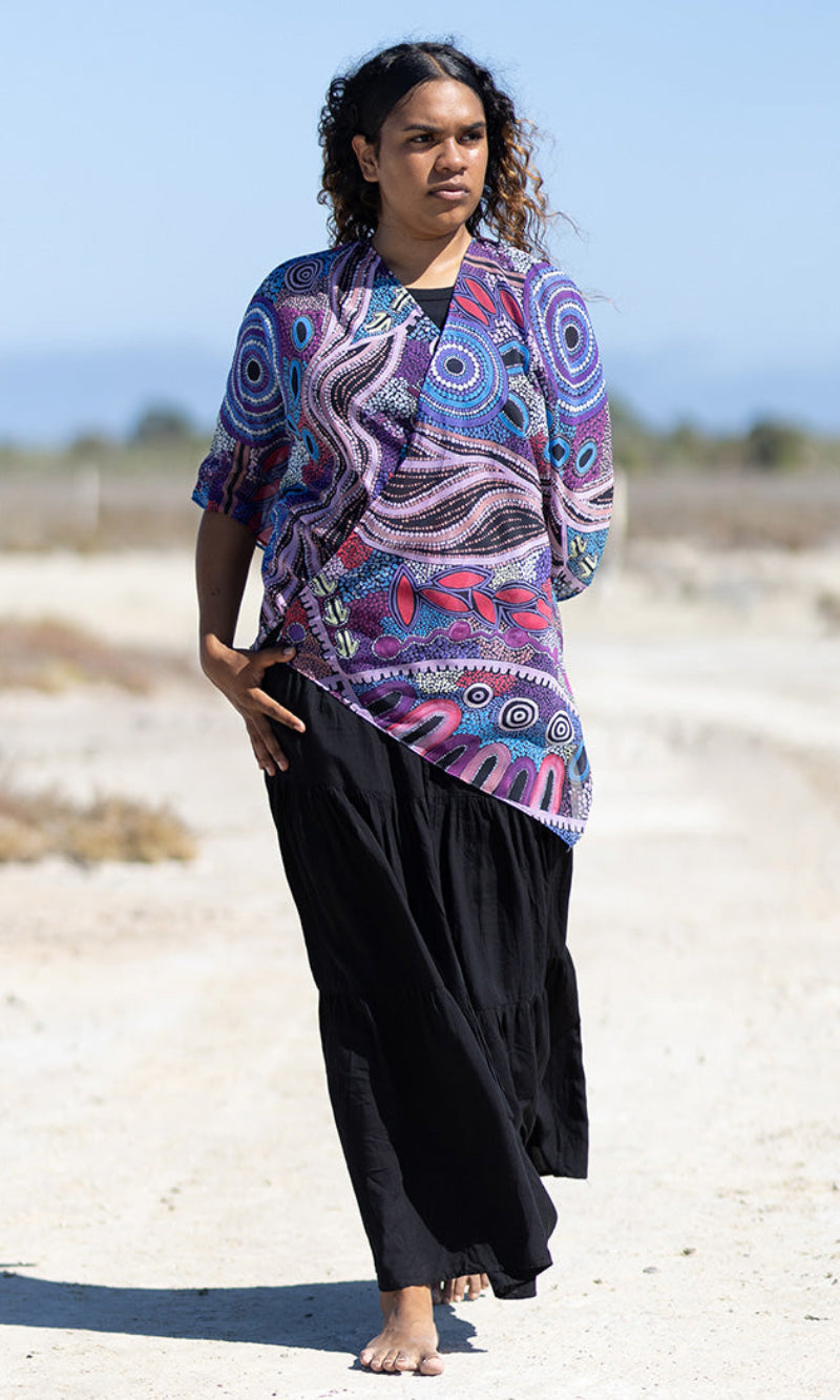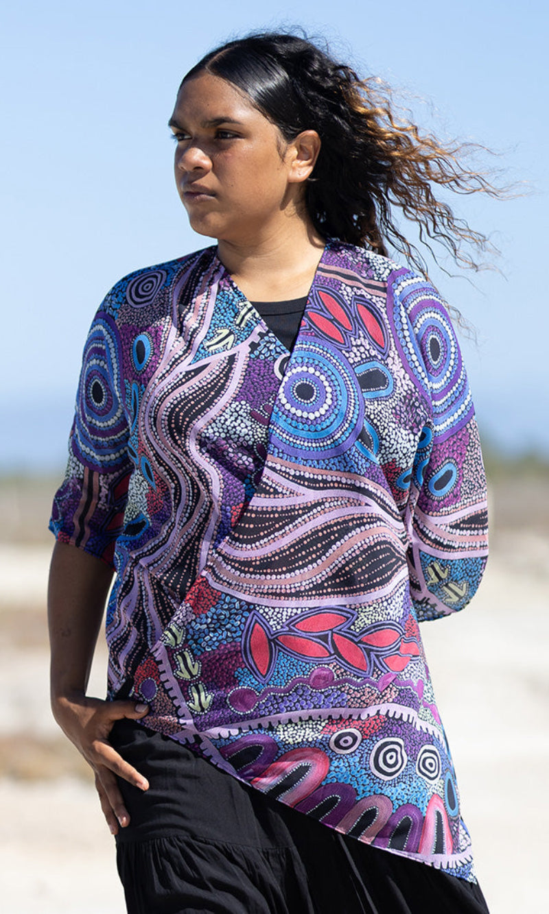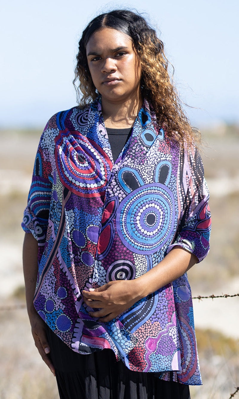 Jessica's art is inspired by family, Country, and Culture in the Yued region in Western Australia. In her debut polo and fashion range she celebrates and honours her heritage through vibrant pieces that each tell a distinct yet connected story.