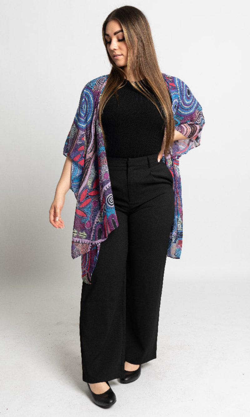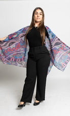 Available in a generous single size, our shawls are tailored with arm holes for the perfect fit. They are made from soft, flowing chiffon that holds colour beautifully. A lightweight and breathable piece that works in all seasons.
