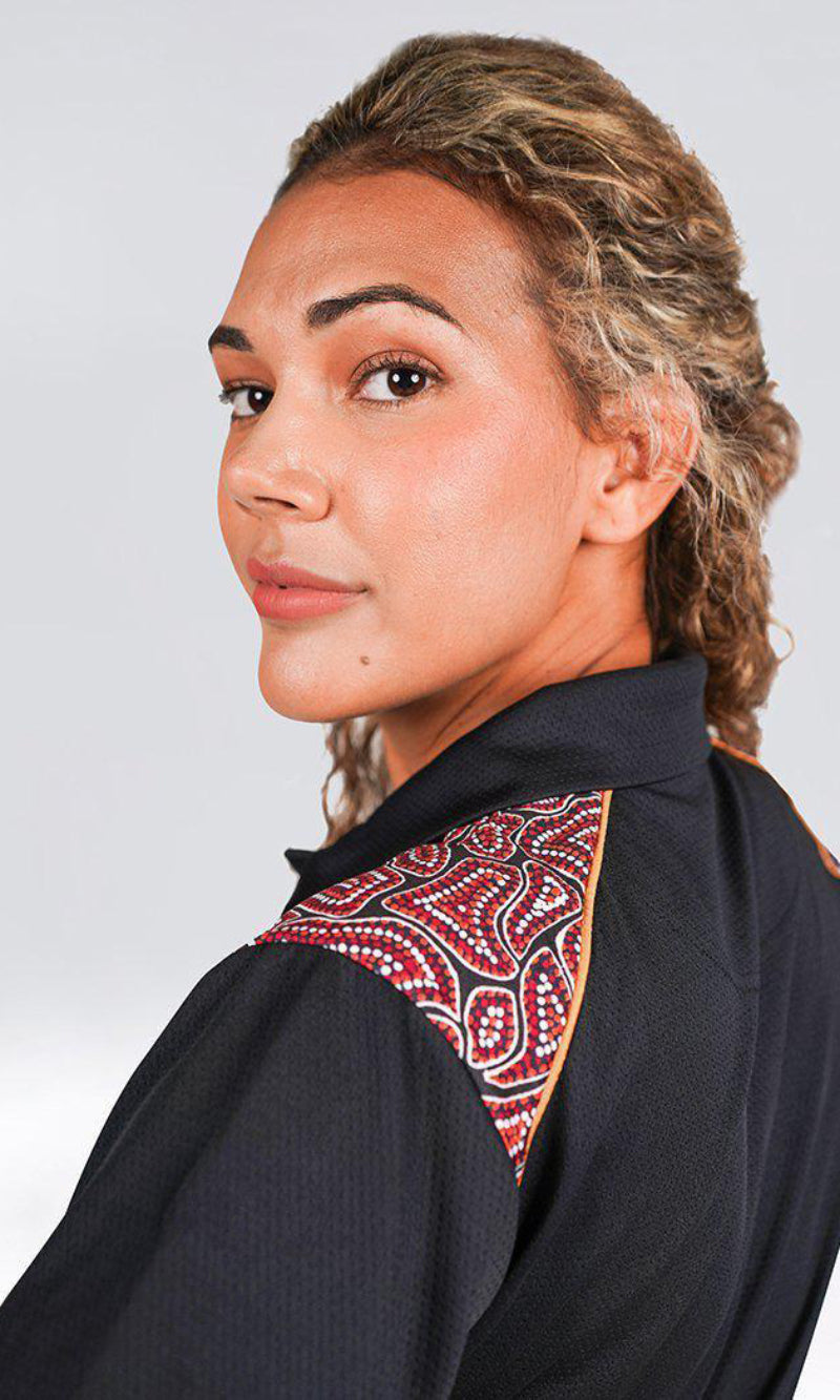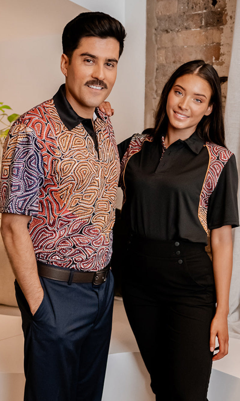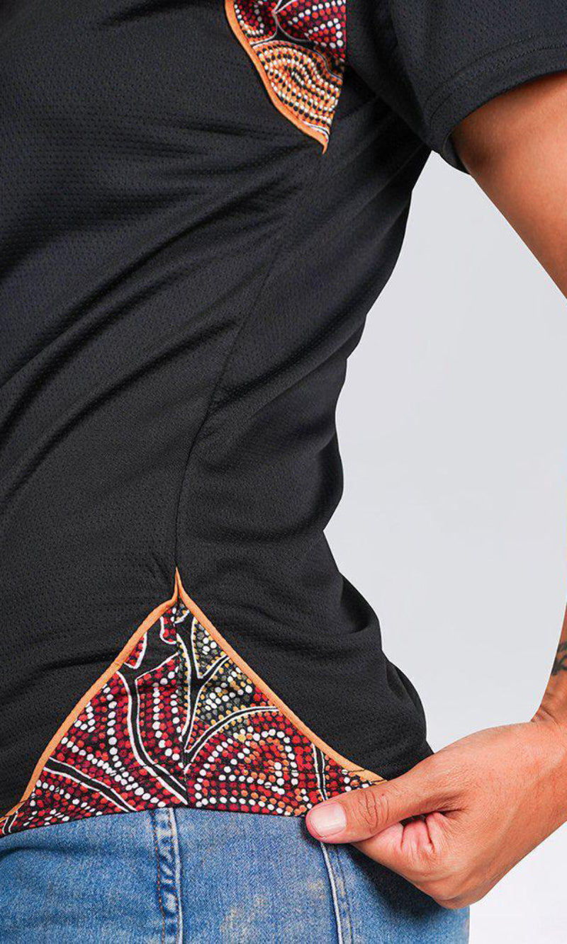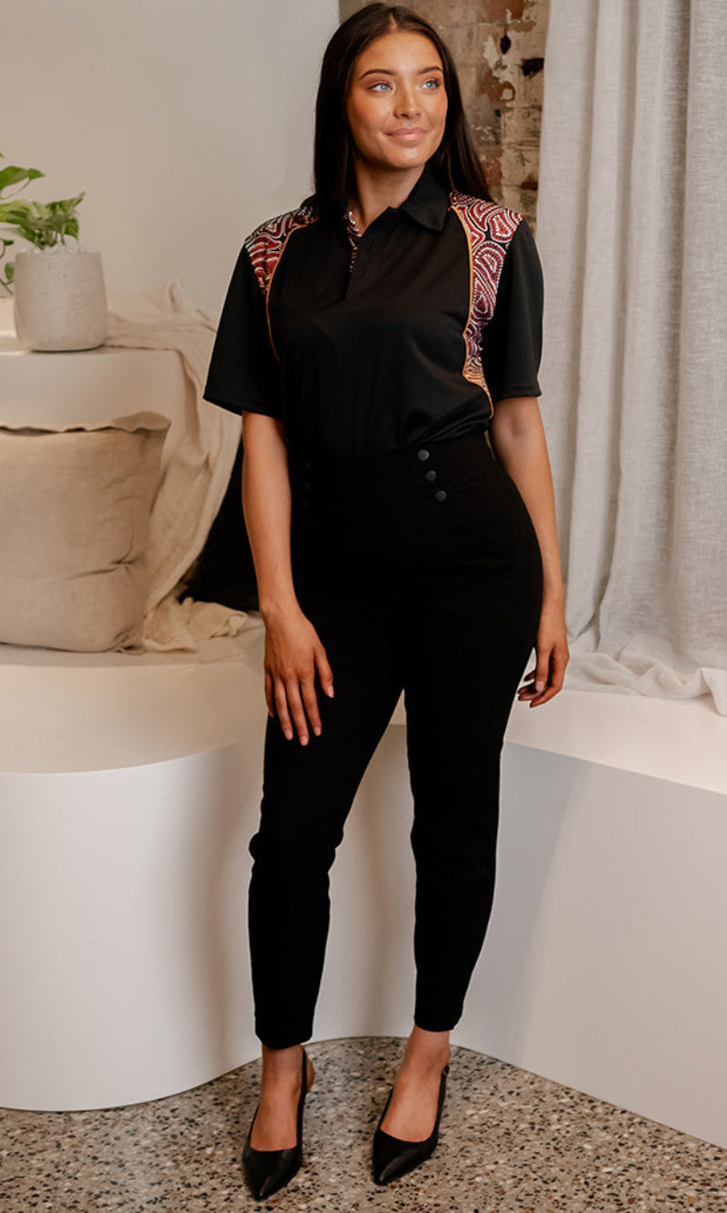 Aboriginal Art Ladies Fitted Bamboo Polo Our Many Tribes
