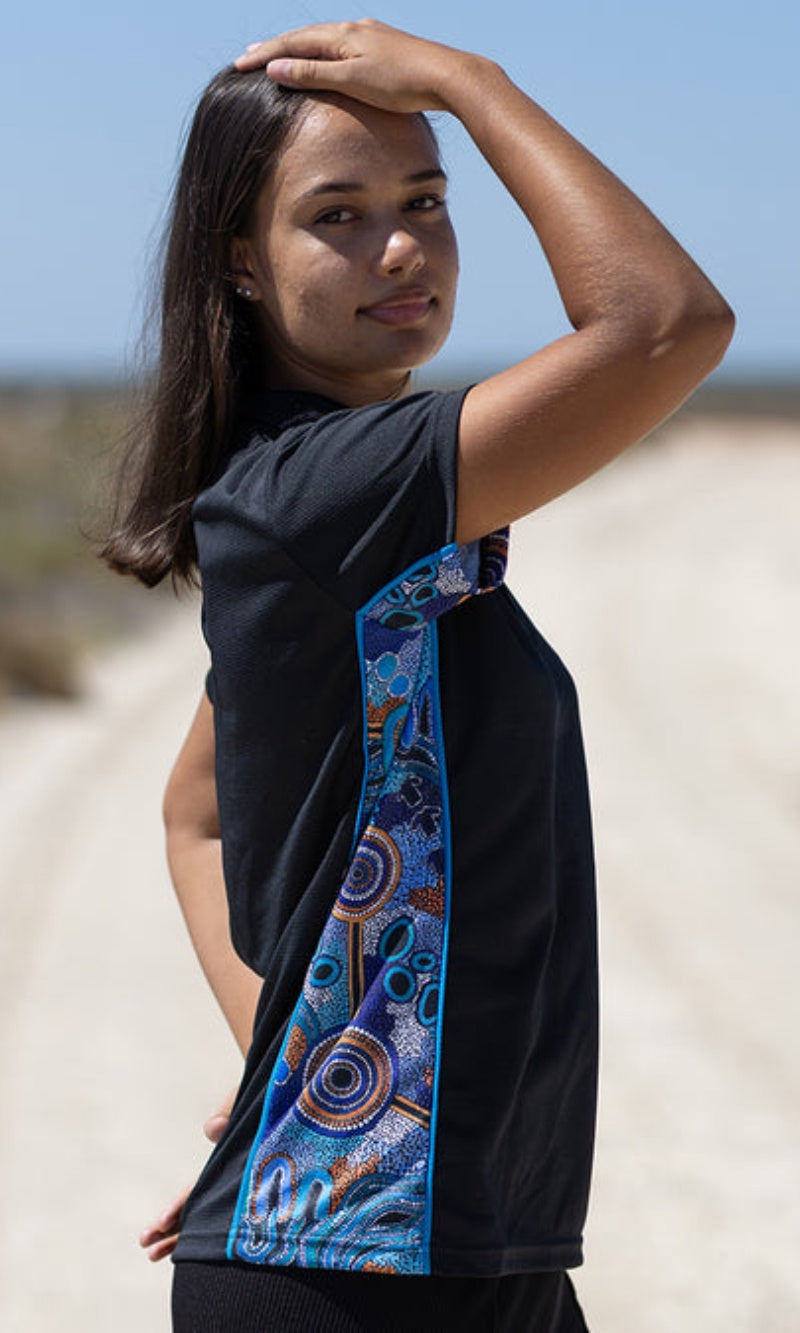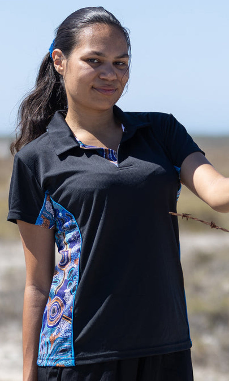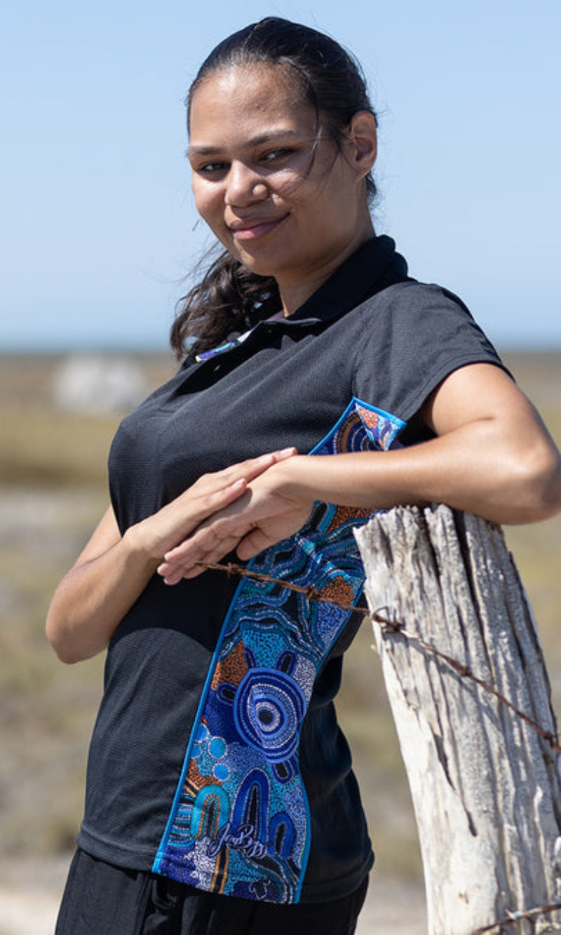 Jessica's art is inspired by family, Country, and Culture in the Yued region in Western Australia. In her debut polo and fashion range she celebrates and honours her heritage through vibrant pieces that each tell a distinct yet connected story.
