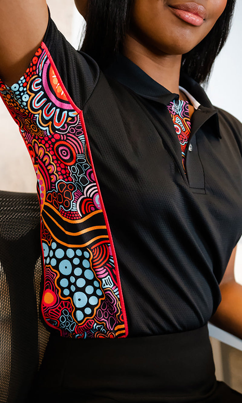 Aboriginal Art Ladies Fitted Bamboo (Simpson) Polo Knowledge Holders