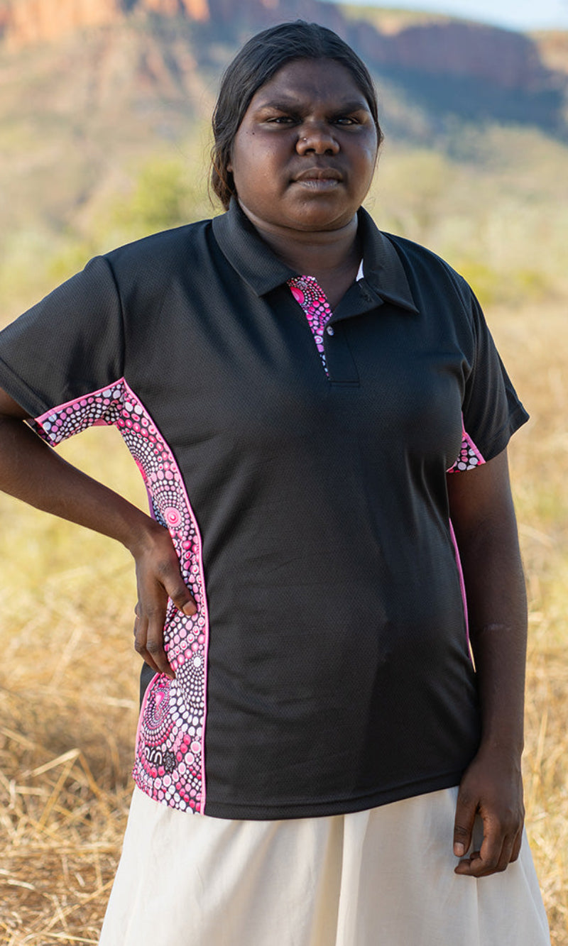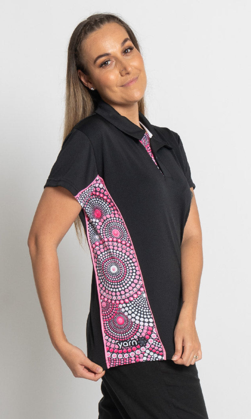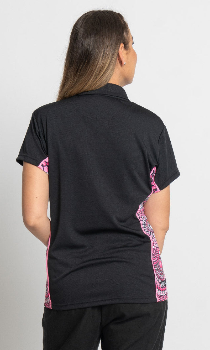 Aboriginal Art Ladies Fitted Bamboo (Simpson) Polo Tribes of Women