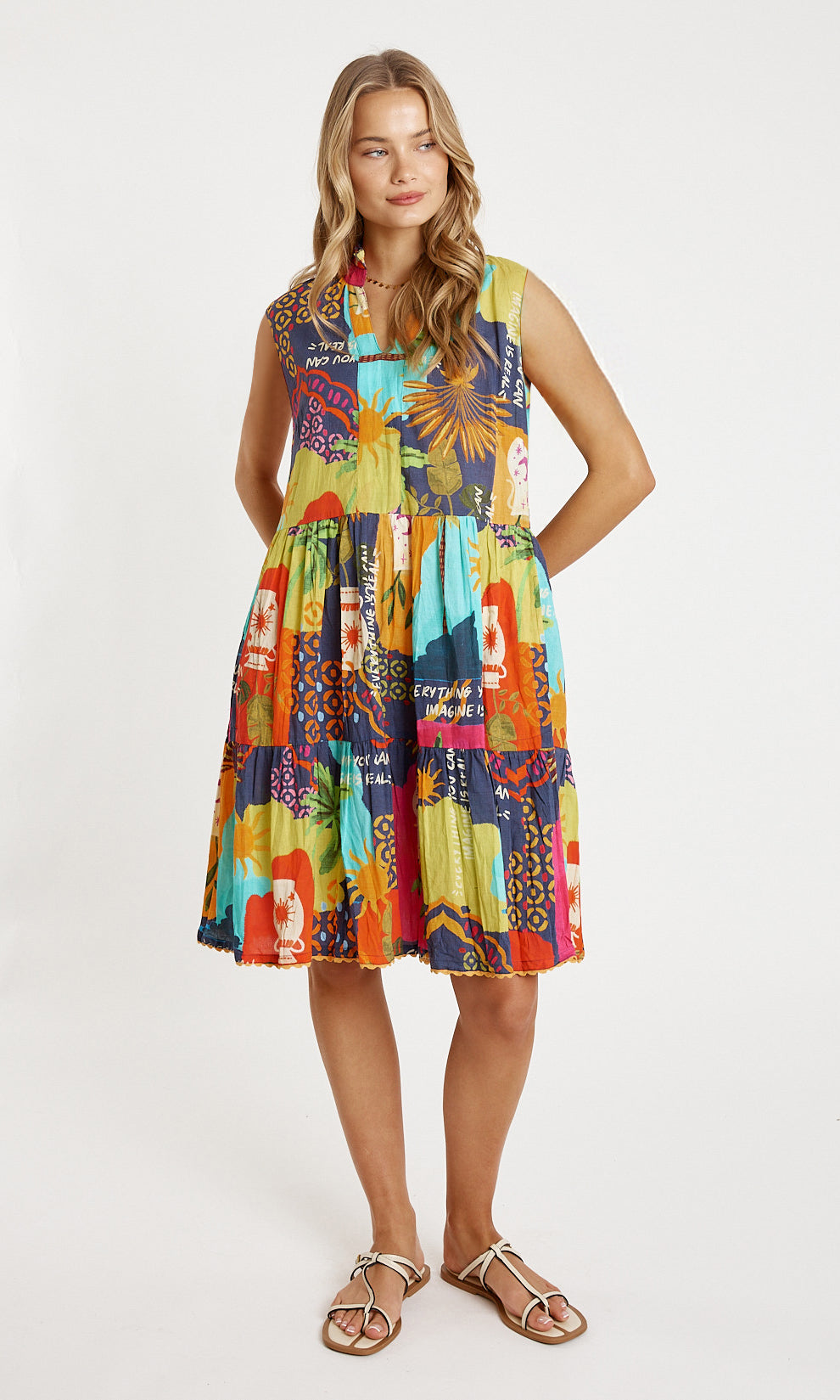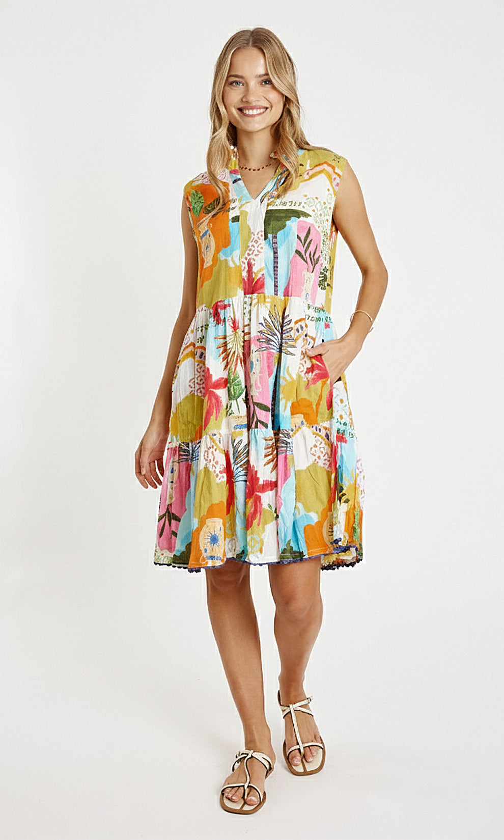 Crinkle Cotton Sleeveless Sundress Rayna, More Colours