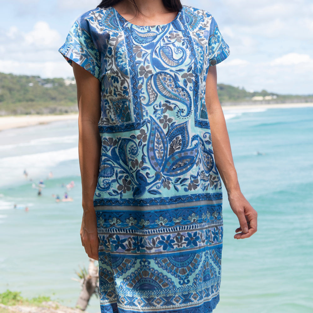 Cotton Dress Reversible Short Sleeve Lima Blue