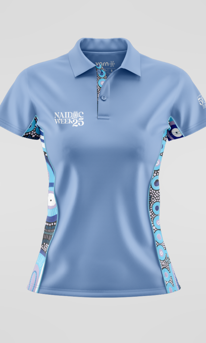 NAIDOC 2025 Aboriginal Art Ladies Fitted Blue Bamboo (Simpson) Future Dreaming