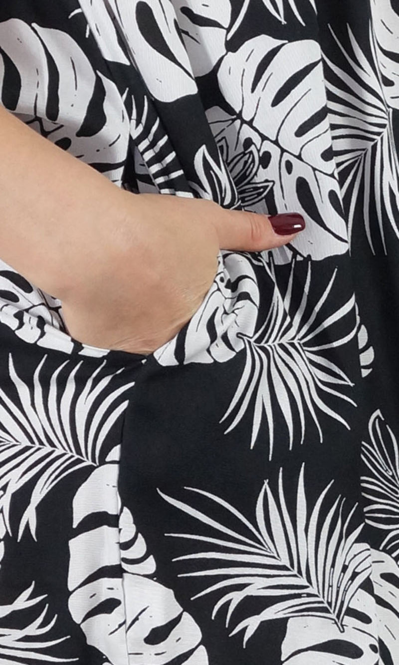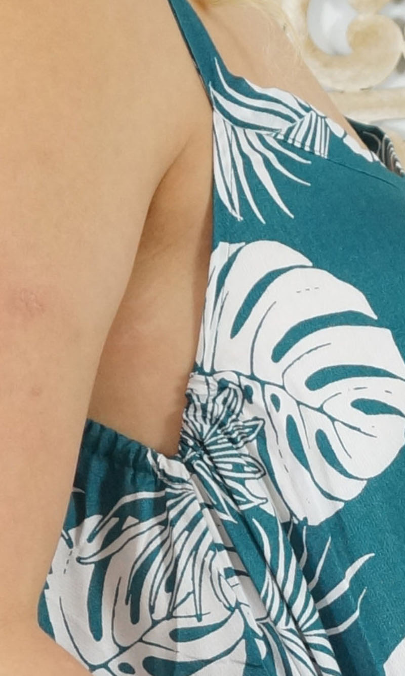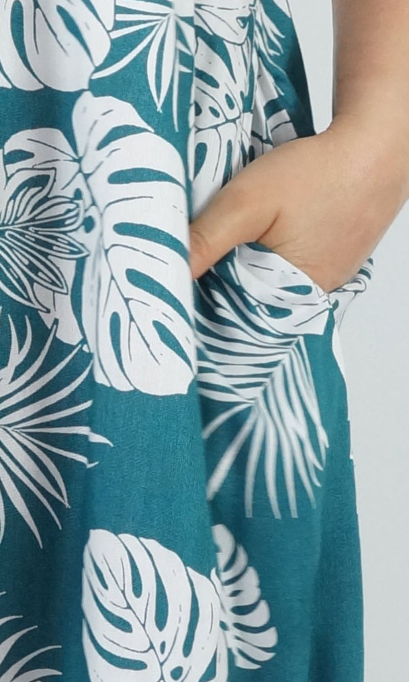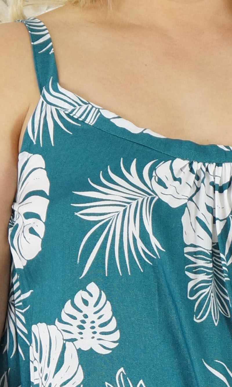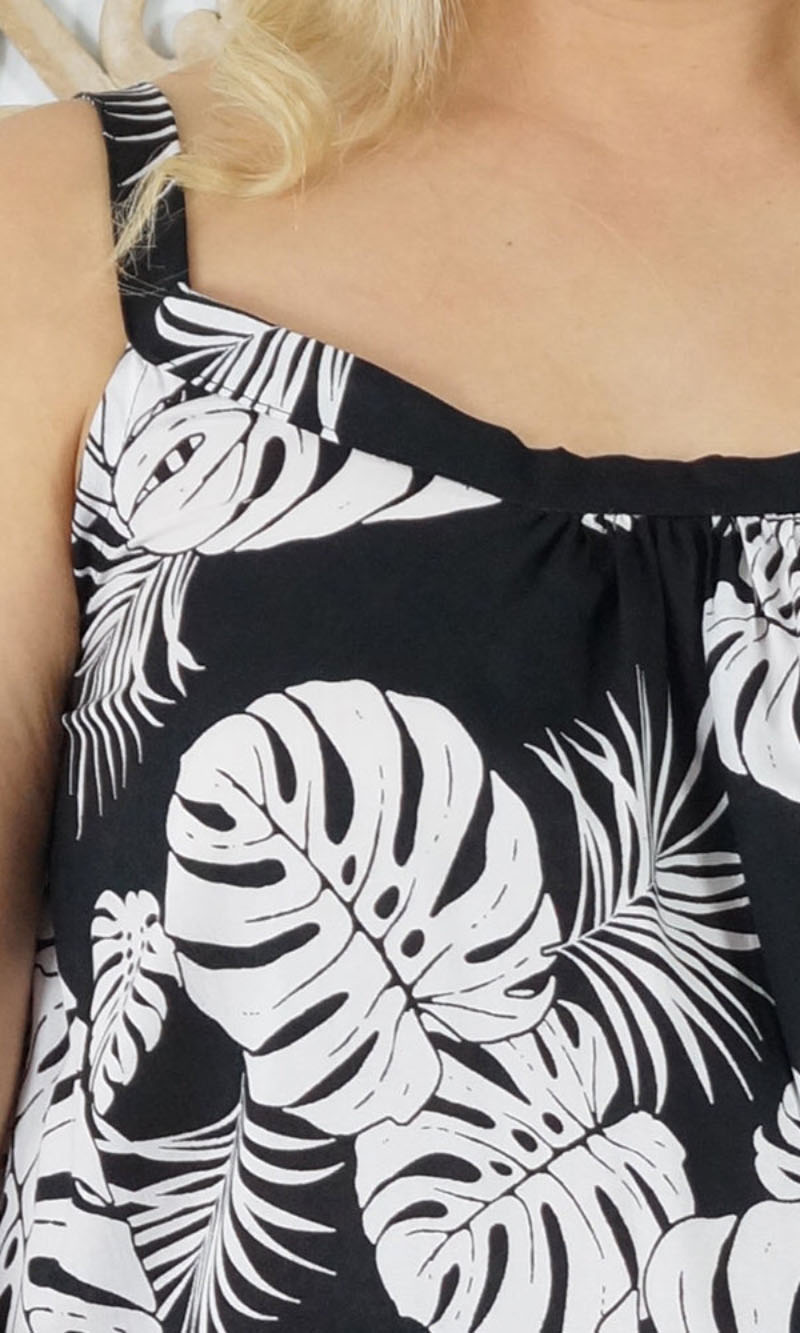 Easy fit mid length dress that falls away from the neckline. Comfortable elastic across the back and adjustable straps.