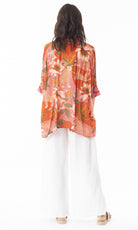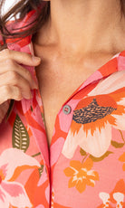 Awaken your inner muse with the dreamy Aria Oversize Top. Featuring a beautiful rose dusk print, this top offers a relaxed silhouette with 3/4 sleeves, a classic collar, and a convenient button-through front, designed for effortless style and creative flow.