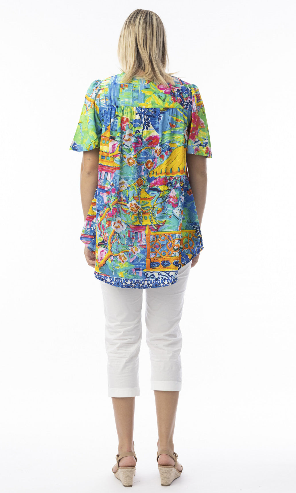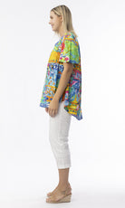 Perfect your summer style with our playful Ipanema top. Featuring a relaxed fit, it showcases a gorgeous prints and colour. The playful ruffled sleeves and hem add a touch of whimsy, while the breathable fabric ensures all-day comfort. Perfectly paired with your favourite trousers or capris for a chic summer look.