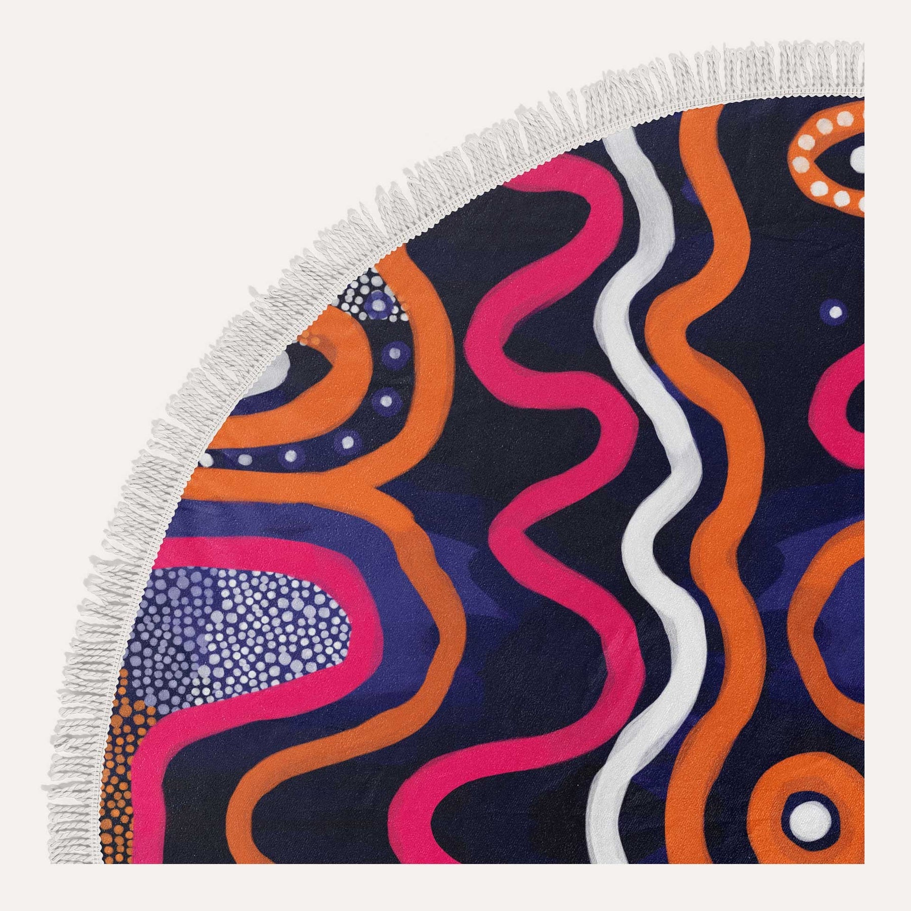 Ethically crafted, dye-sub printed towel made with 100% microfibre soft terry fabric and white twist fringing.