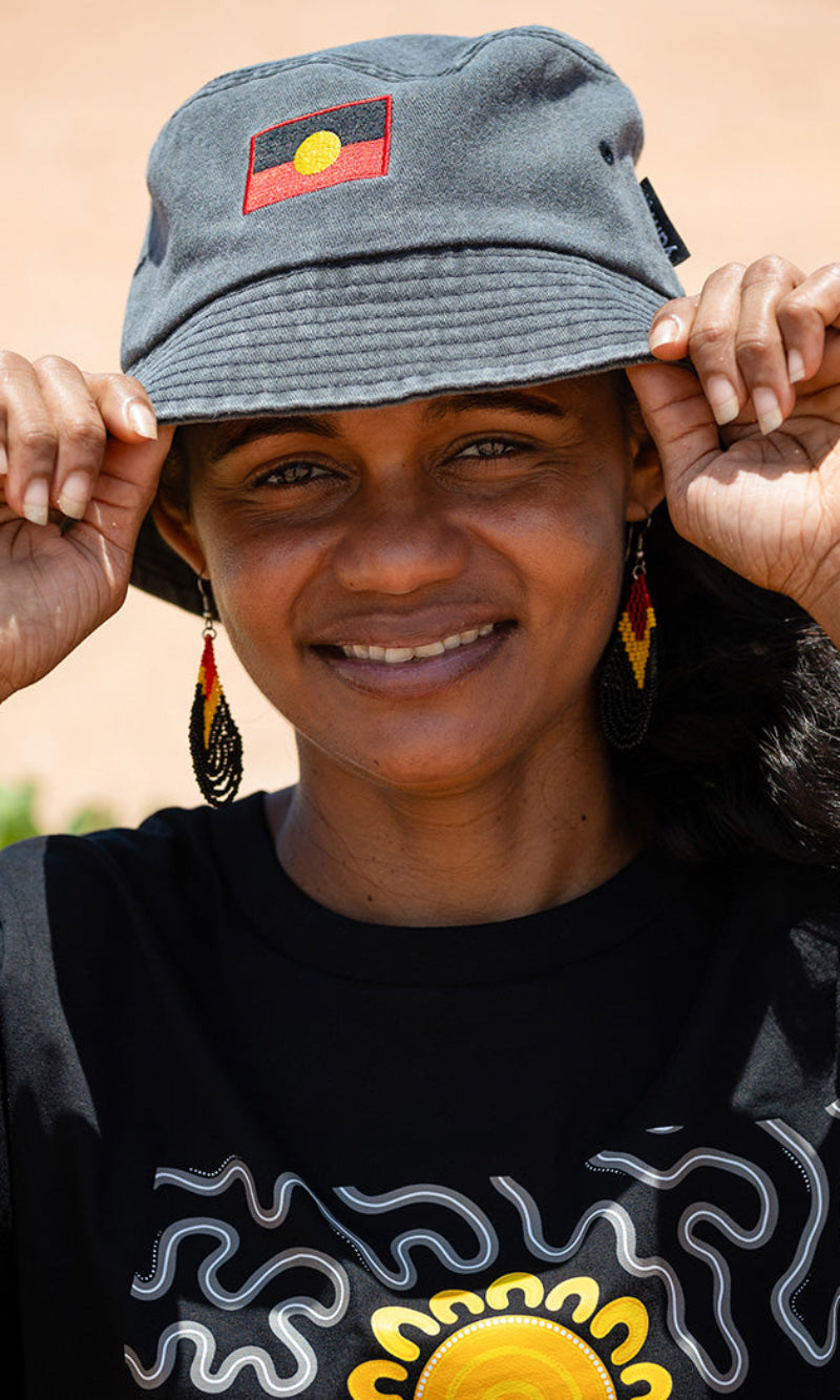 Protect yourself from the sun and look good at the same time with our stylish bucket hat. Our Raise the Flag bucket hat is part of our collection that celebrates the Aboriginal flag finally being freed and placed in public hands.