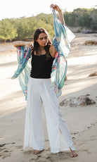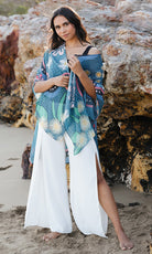 Available in a generous single size, our shawls are tailored with arm holes for the perfect fit. They are made from soft, flowing chiffon that holds colour beautifully. A lightweight and breathable piece that works in all seasons.