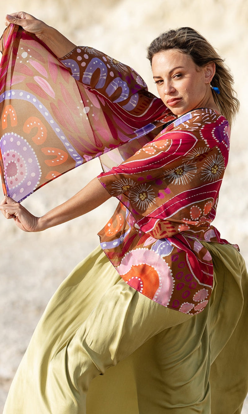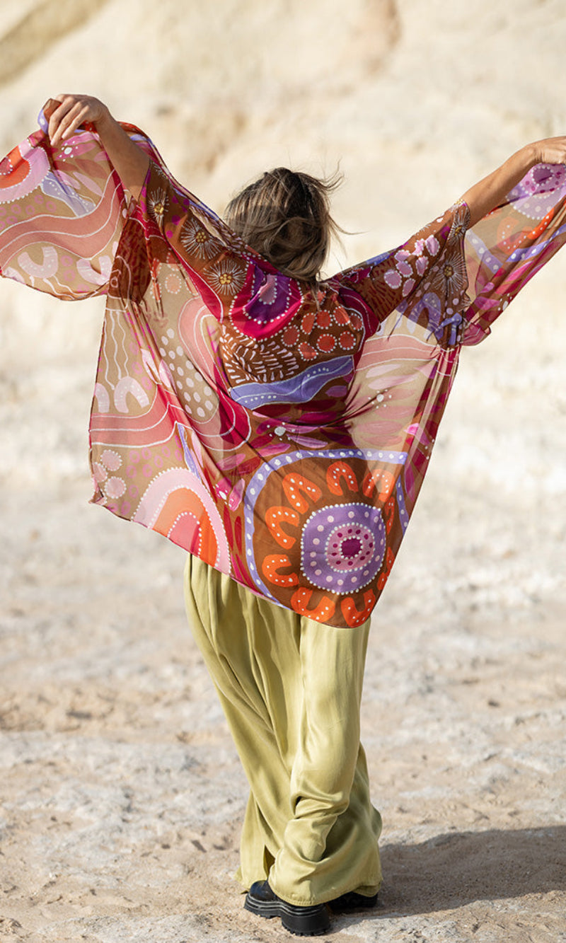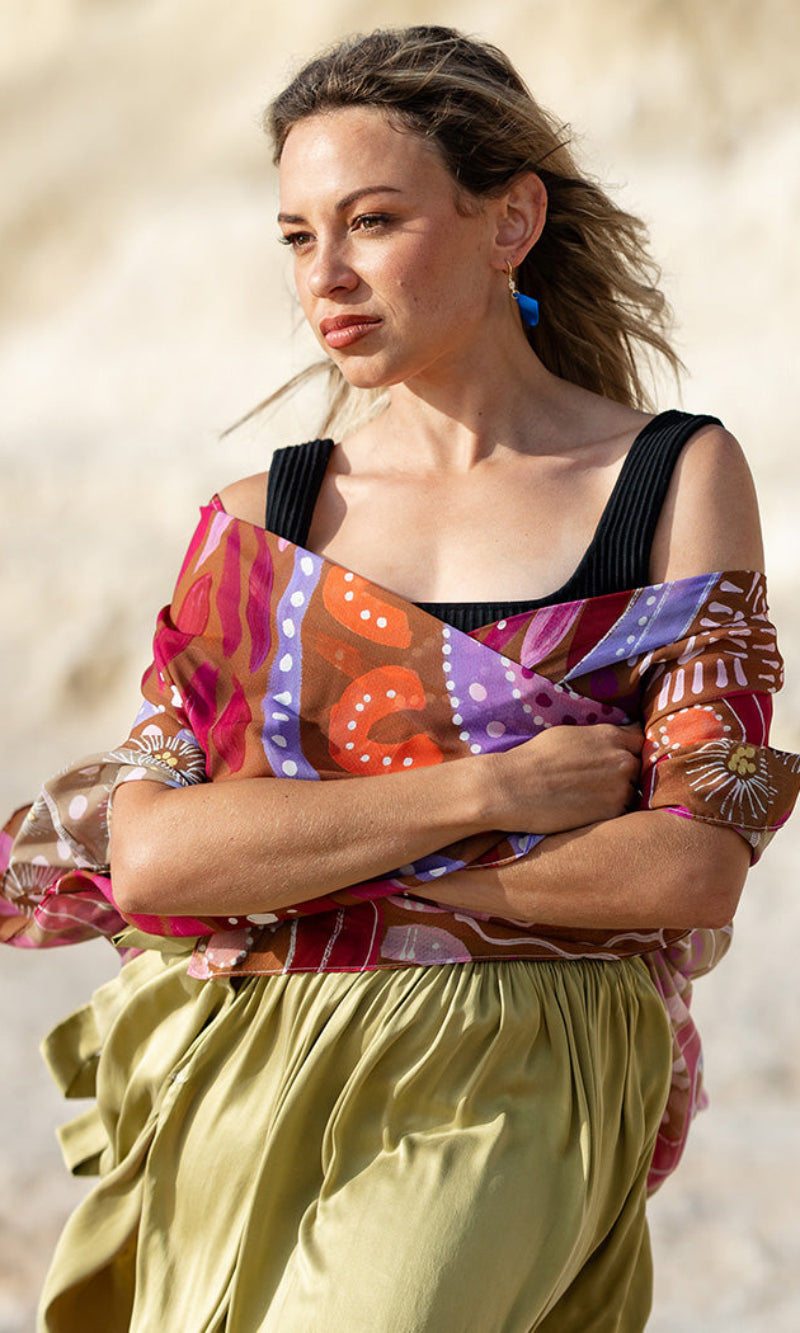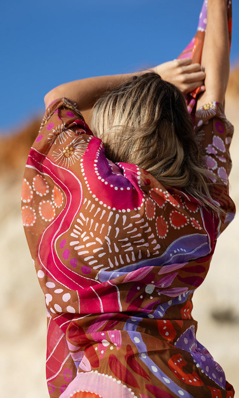 Available in a generous single size, our shawls are tailored with arm holes for the perfect fit. They are made from soft, flowing chiffon that holds colour beautifully. A lightweight and breathable pop of personality that works from day to night.