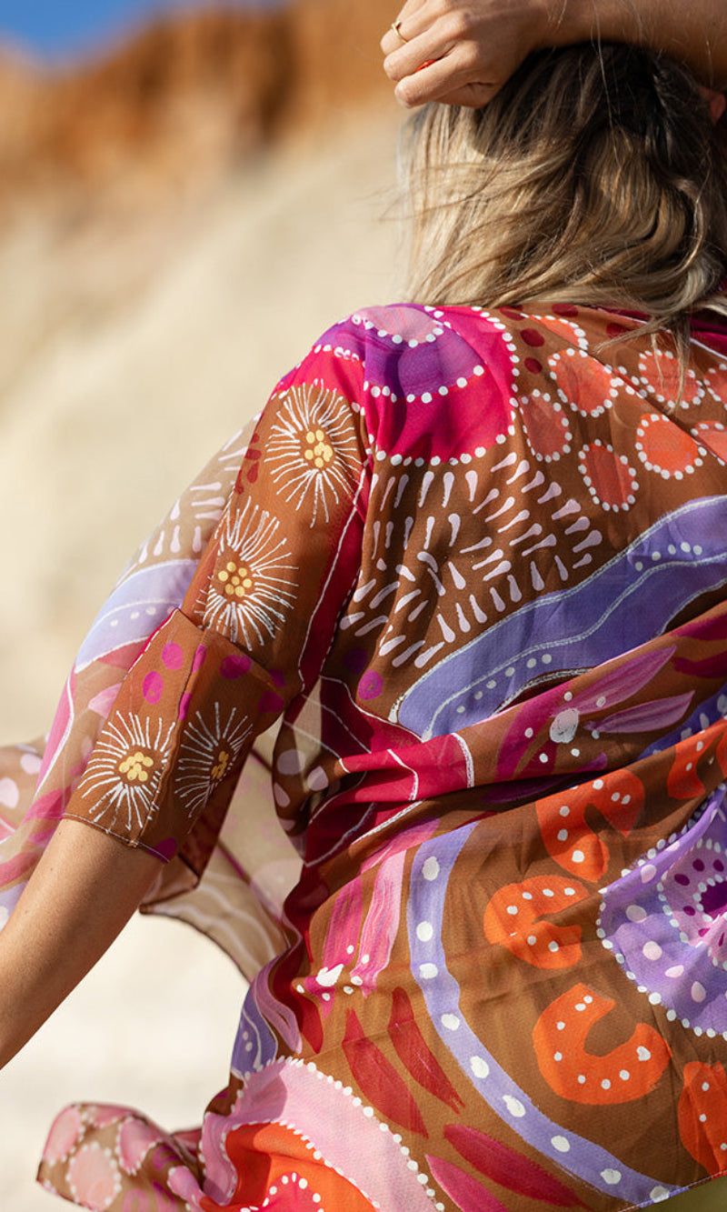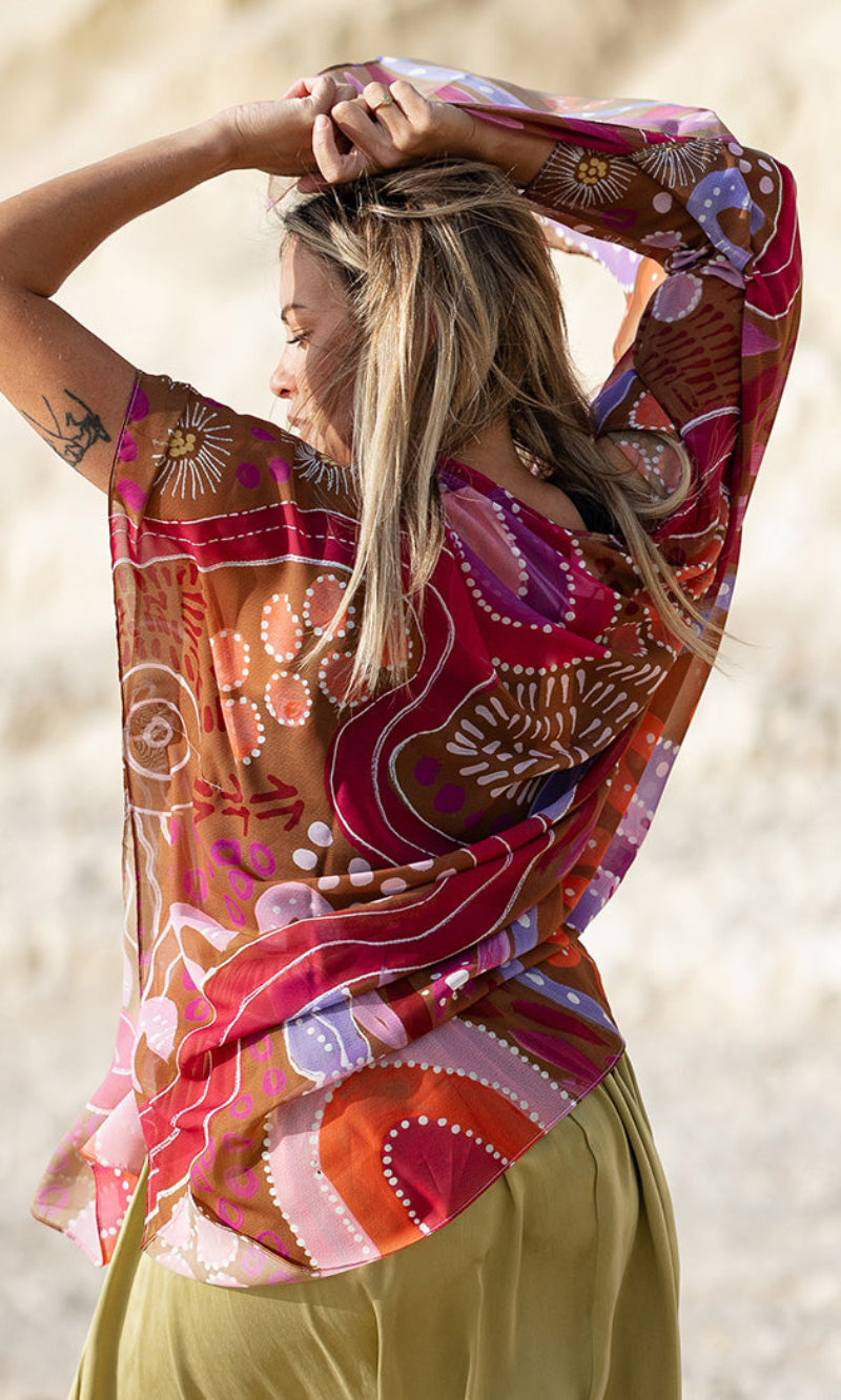 Featuring vibrant artwork from Caitlyn Davies-Plummer (Dustin-Koa Art), these shawls drape beautifully and add colour to your outfit without heaviness or bulk. Her latest release features a host of Home-inspired designs that reflect the soothing and uplifting role of art is her life, of 'feeling like home'.