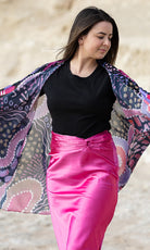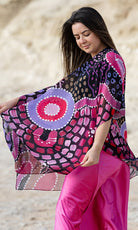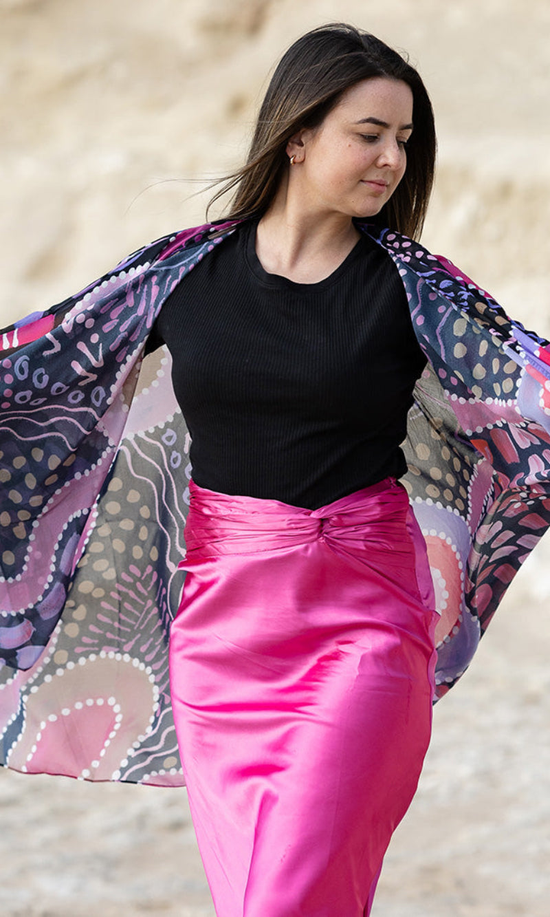 Available in a generous single size, our shawls are tailored with arm holes for the perfect fit. They are made from soft, flowing chiffon that holds colour beautifully. A lightweight and breathable pop of personality that works from day to night.