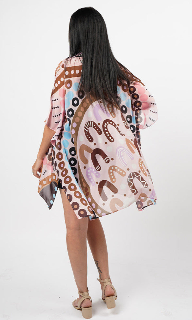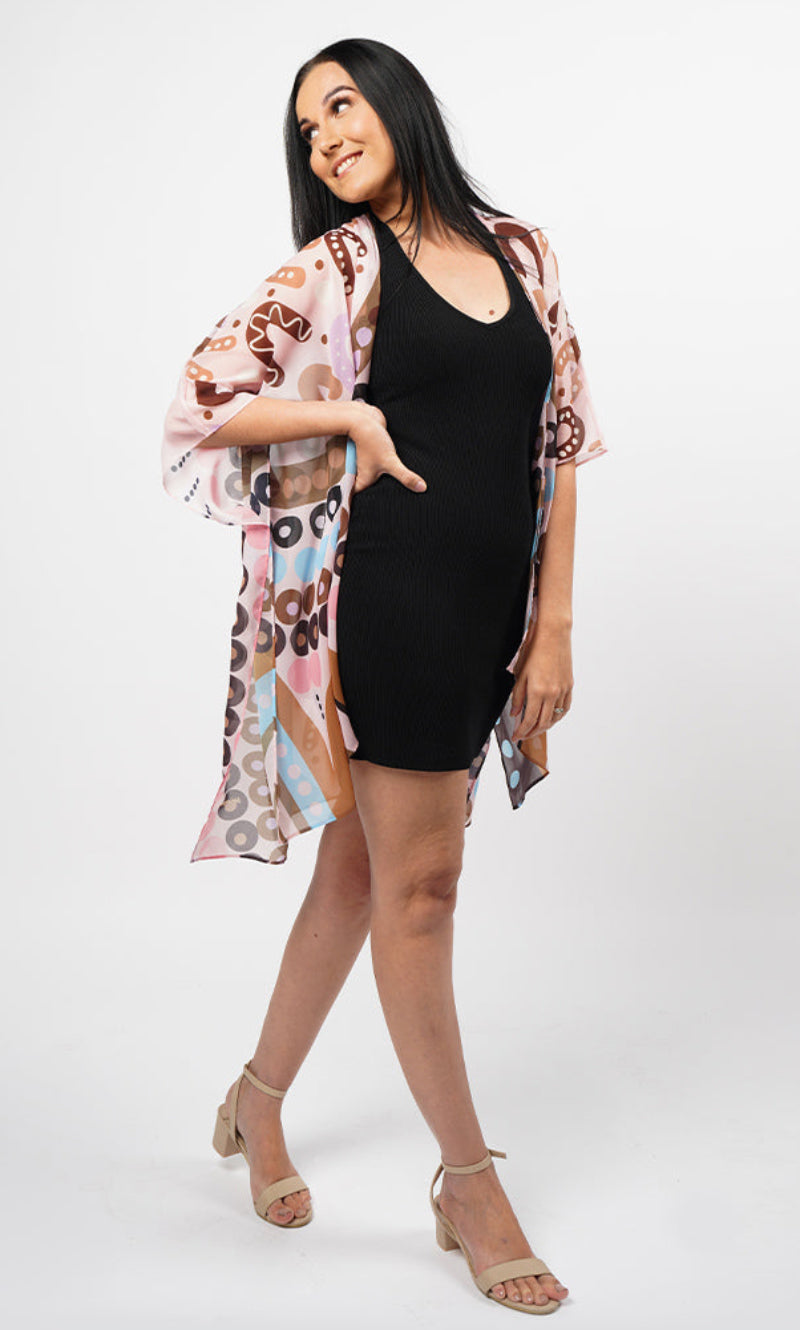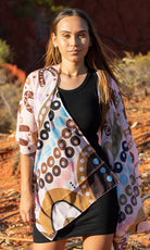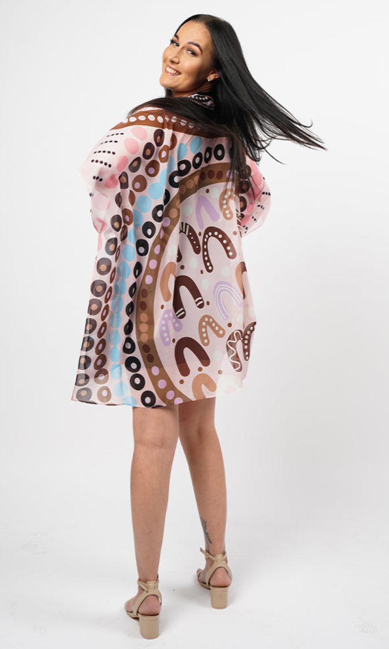 These shawls are a part of our NAIDOC 2022 collection. The unique artwork 'The Time Is Now' by Bidjara woman Sheri Skele represents the impactful theme Get Up! Stand Up! Show Up! This is a call to action for everyone to stand up and push for systemic change that brings about justice and equity for Aboriginal and Torres Strait Islander people.