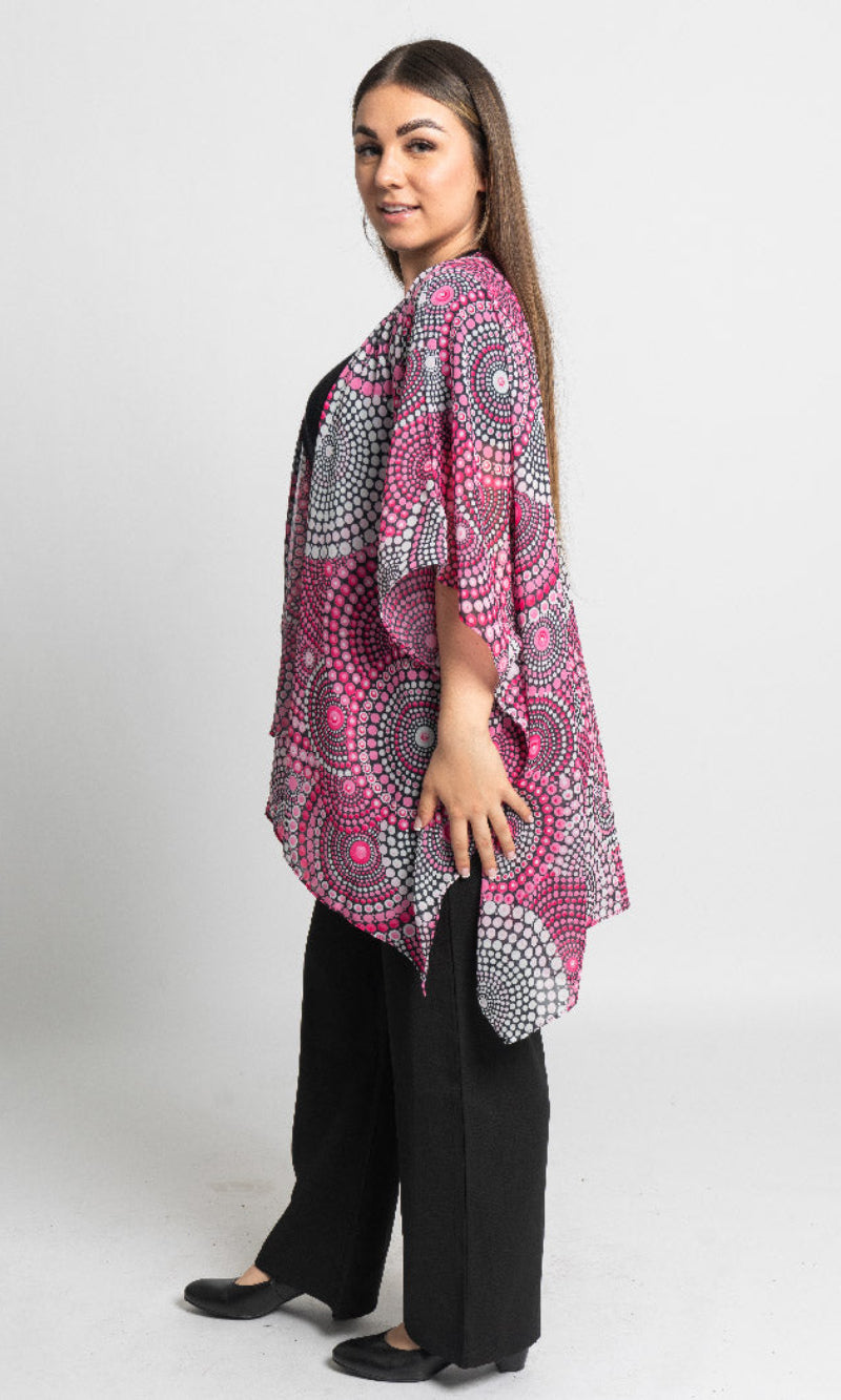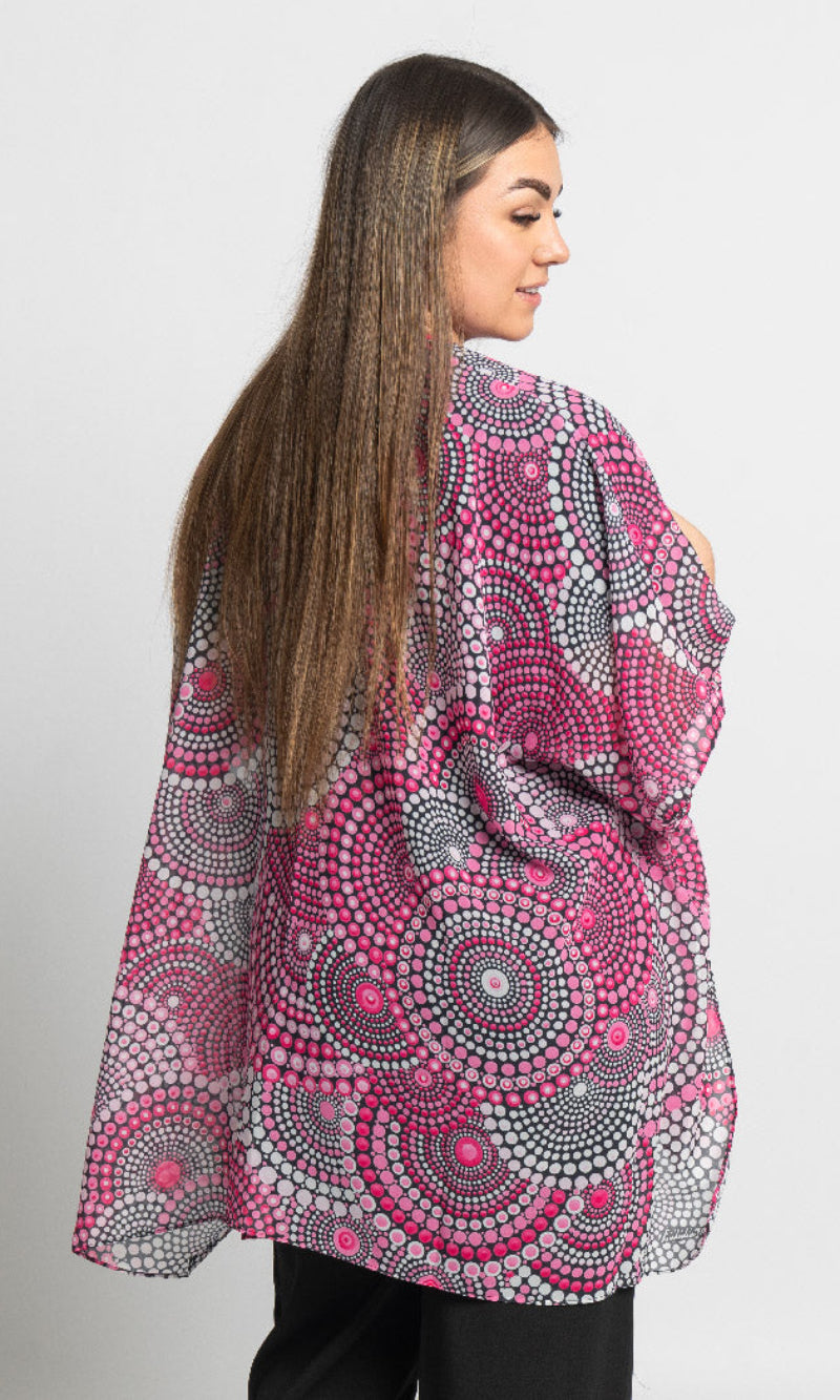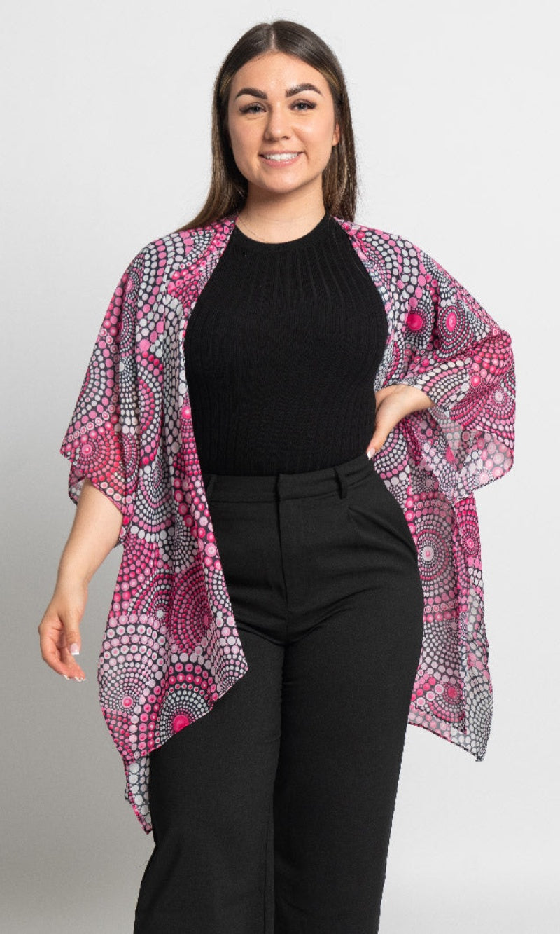 Available in a generous single size, our shawls are tailored with arm holes for the perfect fit. They are made from soft, flowing chiffon that holds colour beautifully. A lightweight and breathable piece that works in all seasons.
