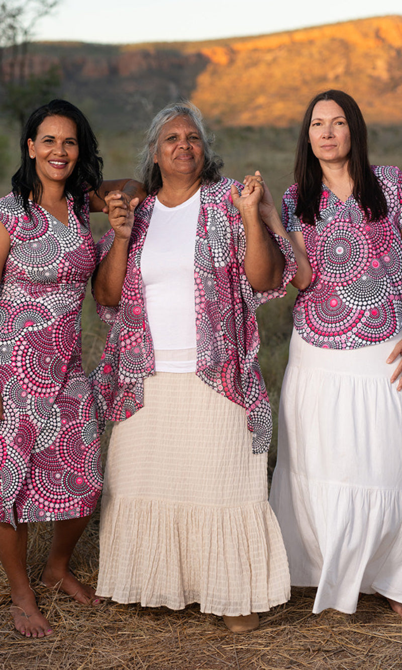 Yarn is proud to partner with the National Breast Cancer Foundation (NBCF) and Bunuba and Gija artist Eulalia Martin to release our limited-edition collection ‘Tribe of Women’. For each product sold in this collection, Yarn will donate $2 to the NBCF to support world-class breast cancer research.