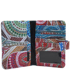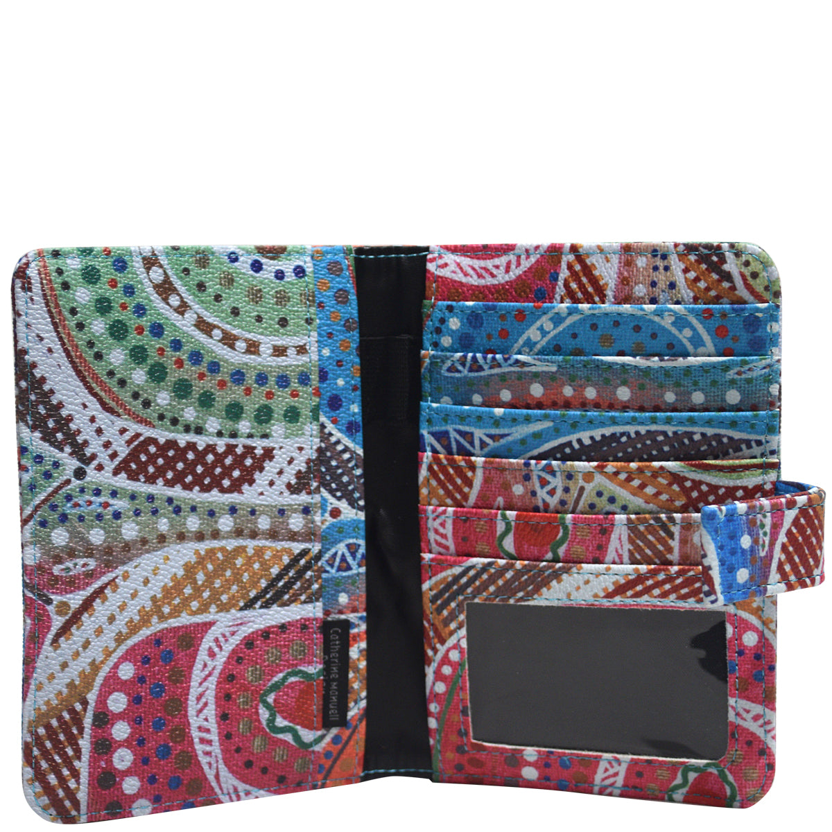 Handy-sized passport and card holder. On the outside is a zip pocket for those quick-to-hand things you need in an instant. Open the clasp and on one side there are five card slots and a clear window and on the other side there’s a double pocket to fit your passport.