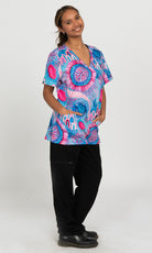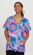 Aboriginal Art Ladies Three Pocket Scrub My Journey