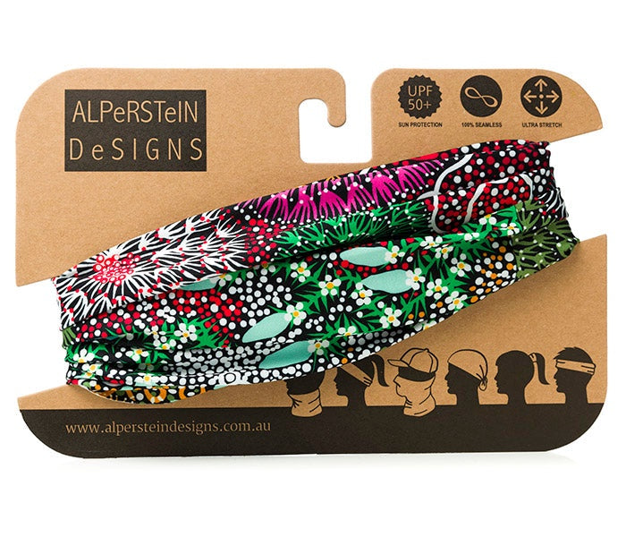 With so many ways to wear your neck gaiter and so many activities to wear them at, these neck gaiters are great for when you are out and about. Whether it's fishing or riding, skiing or running or just out for the day! Head out in style! Neck Gaiters are UPF 50+ for extra protection from the elements. Available in assorted designs, including featured artwork, reproduced under license by Aboriginal artist, Coral Hayes Pananka..