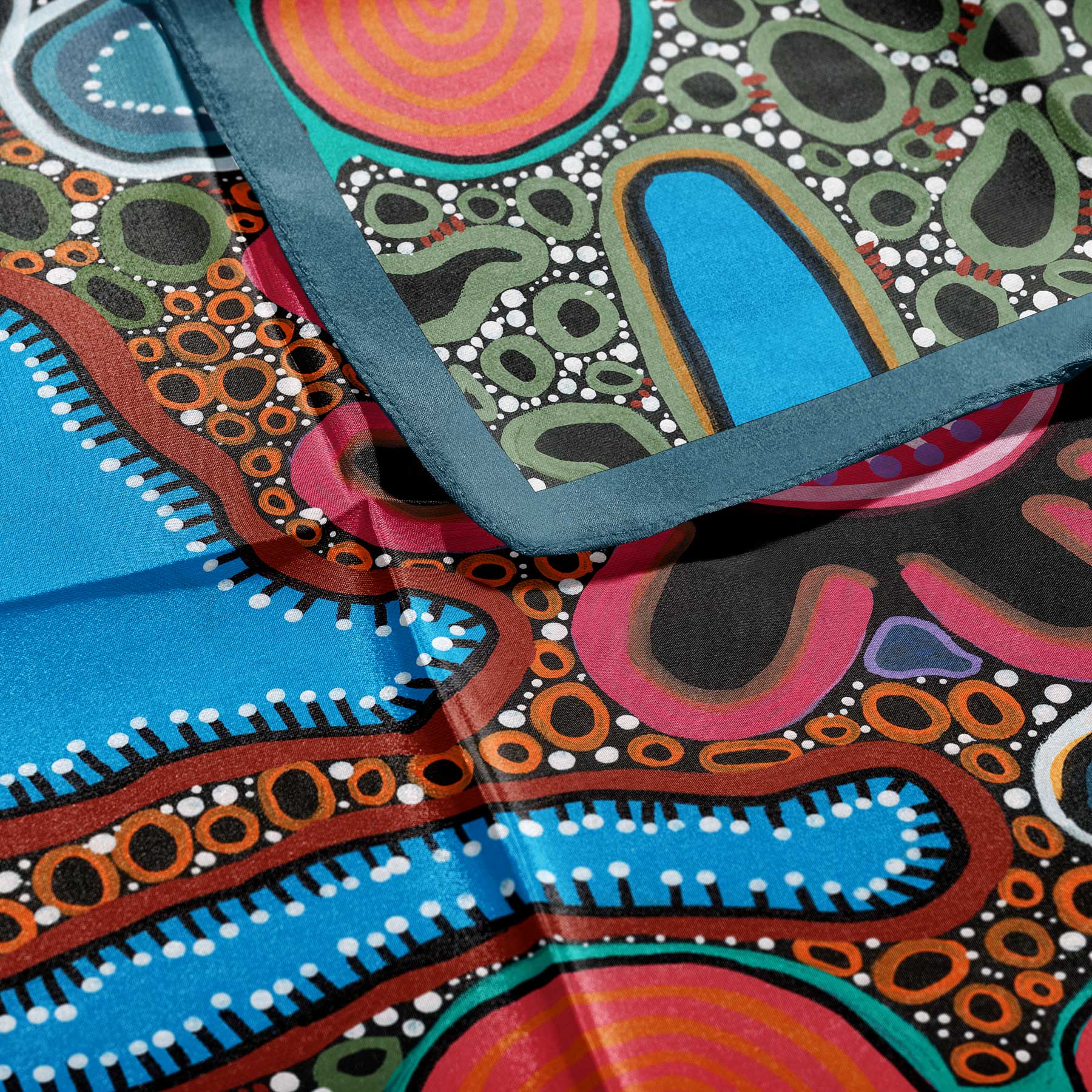 Features hand-rolled edges and a printed design on lightweight vegan silk microfibre material.