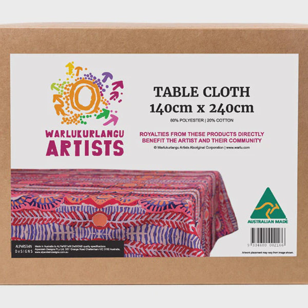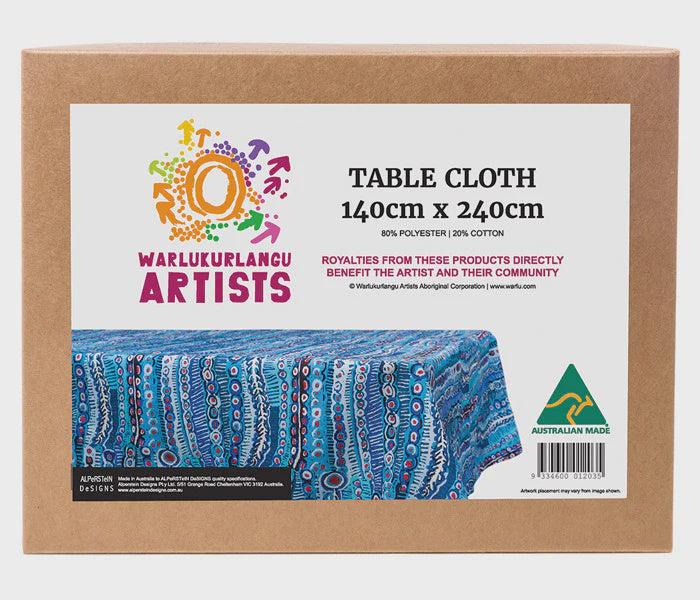 Poly Cotton Tablecloth featuring artwork by Murdie Morris from Warlukurlangu Artists in the Northern Territory, Australia.