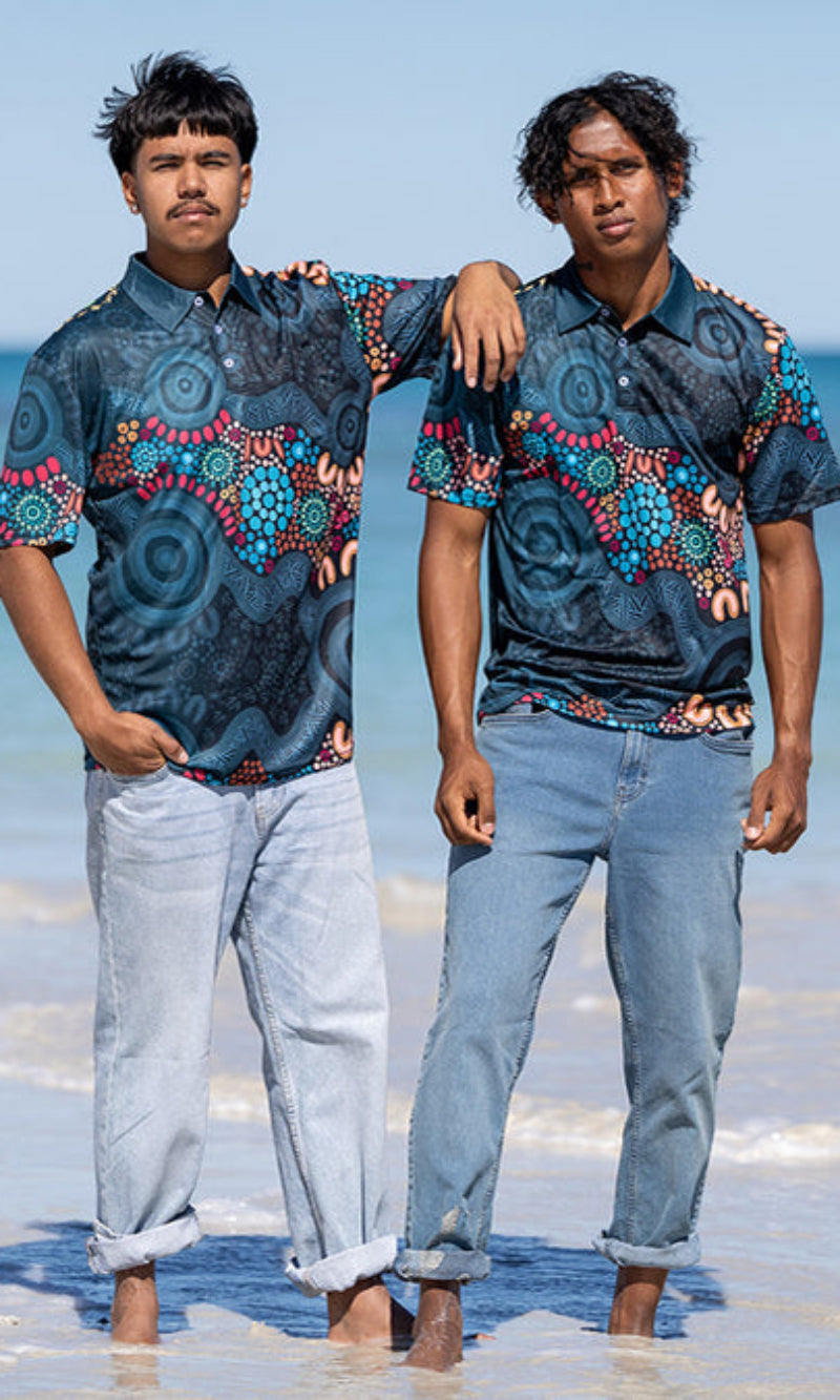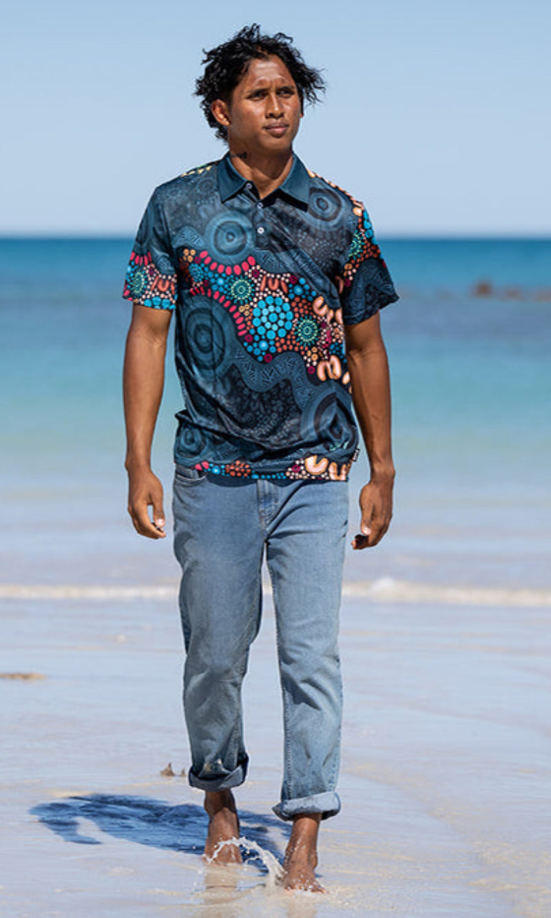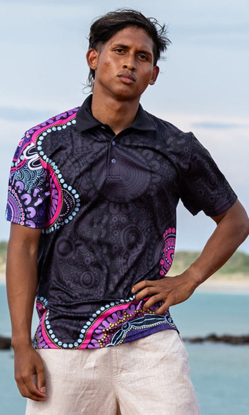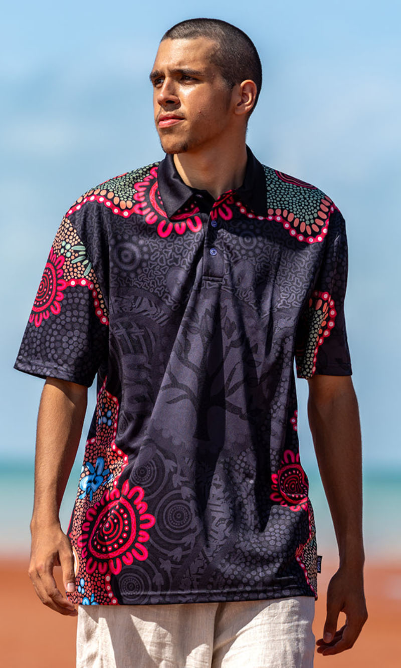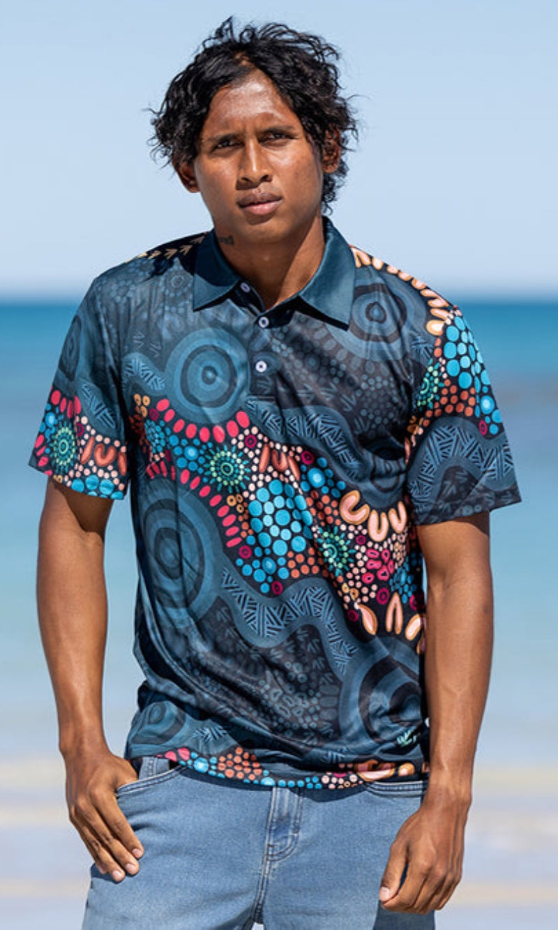 With built-in UPF50+ sun protection, you can enjoy the outdoors with confidence, knowing your skin is shielded from harsh UV rays. Available in unisex, fitted, and kids’ sizes, this polo is more than just everyday wear - it’s a vibrant celebration of First Nations Culture, designed to be seen and appreciated wherever you go.