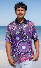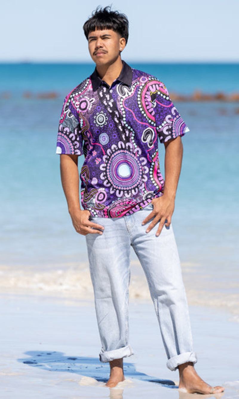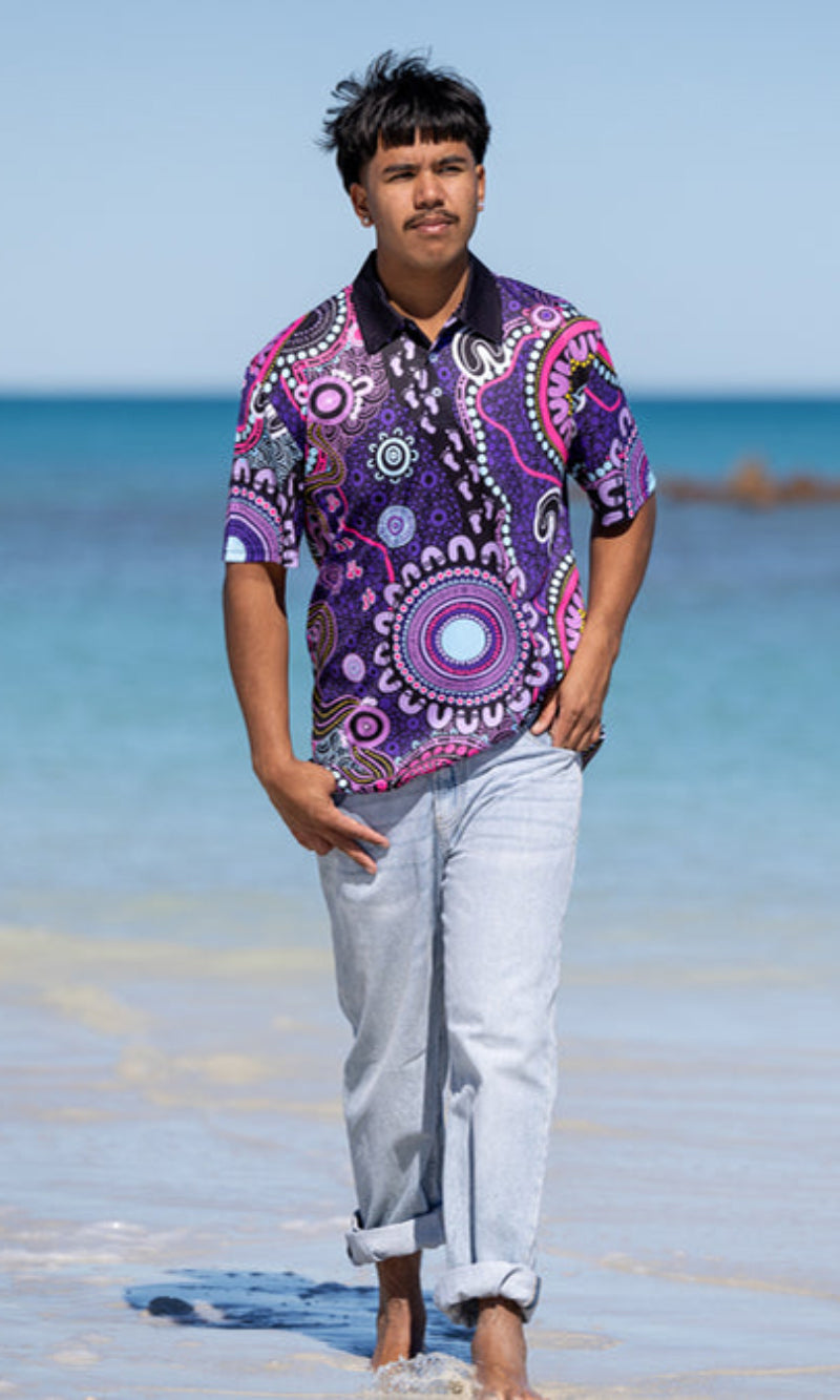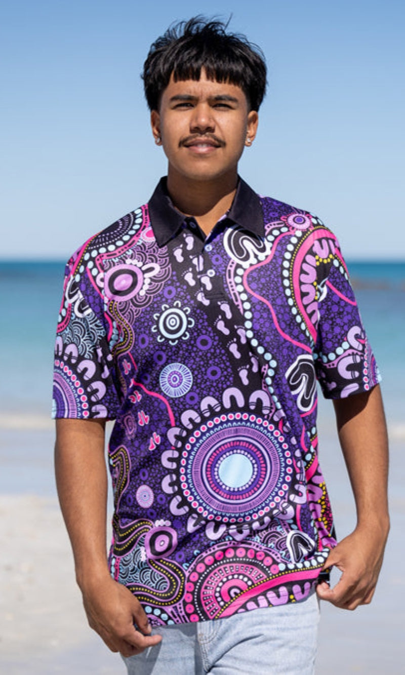 With built-in UPF50+ sun protection, you can enjoy the outdoors with confidence, knowing your skin is shielded from harsh UV rays. Available in unisex, fitted, and kids’ sizes, this polo is more than just everyday wear—it’s a vibrant celebration of First Nations culture, designed to be seen and appreciated wherever you go.