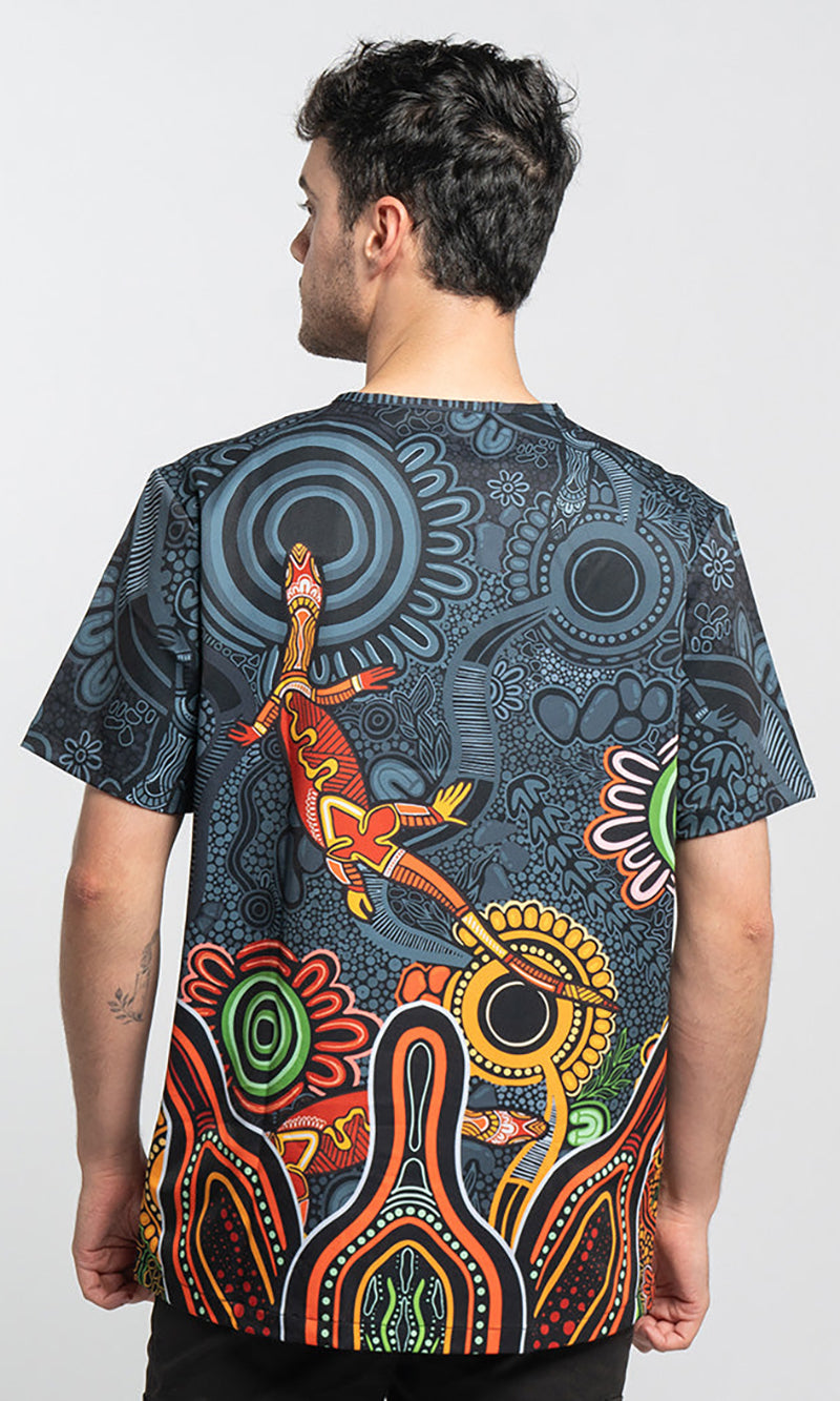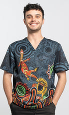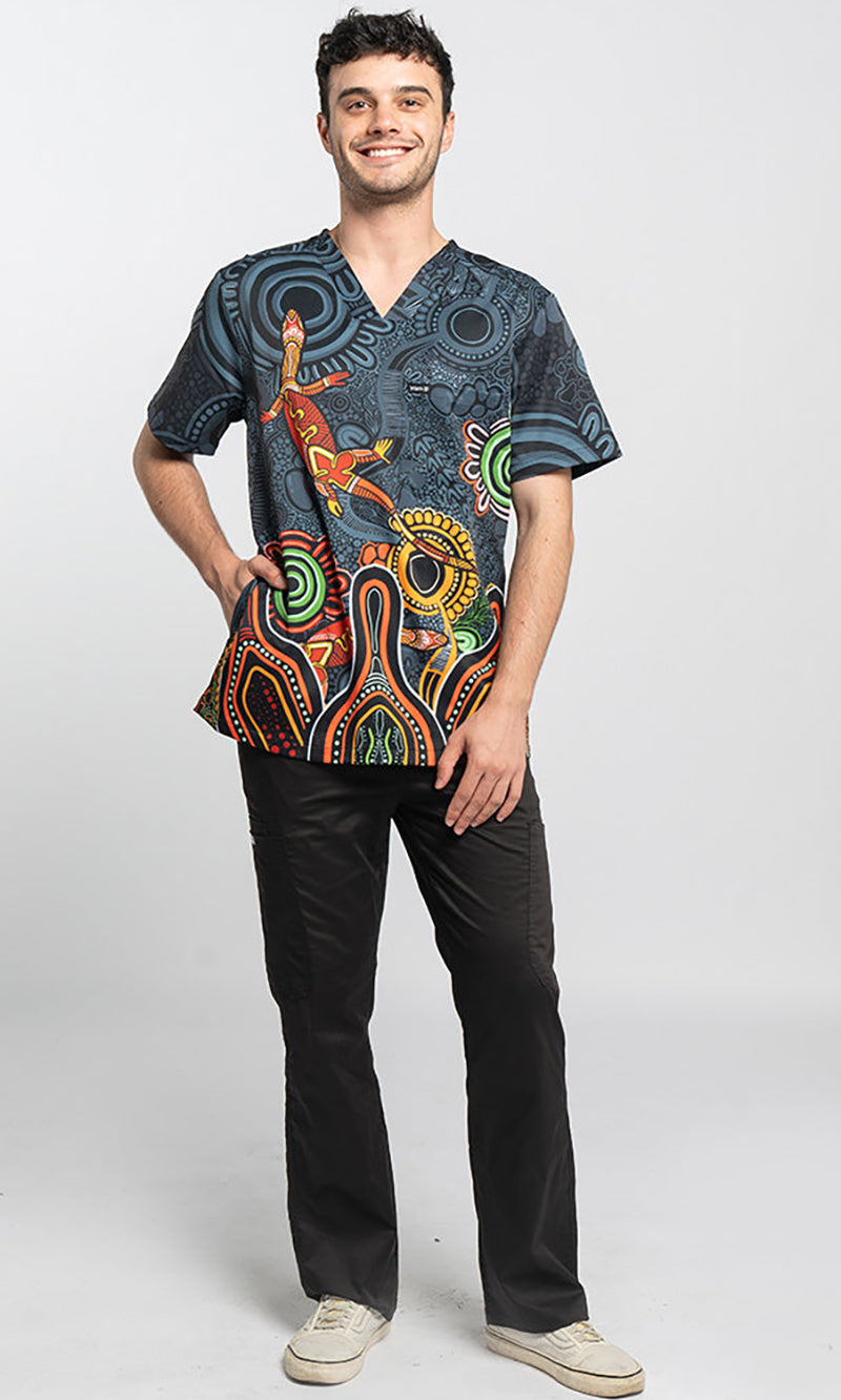 Brighten up long days on your feet caring for those who need it most! Our scrubs feature First Nations artwork printed onto high tech, high quality workwear that is both practical and beautiful. Our new Essence style highlights key features of the artwork against a subtle background.