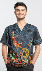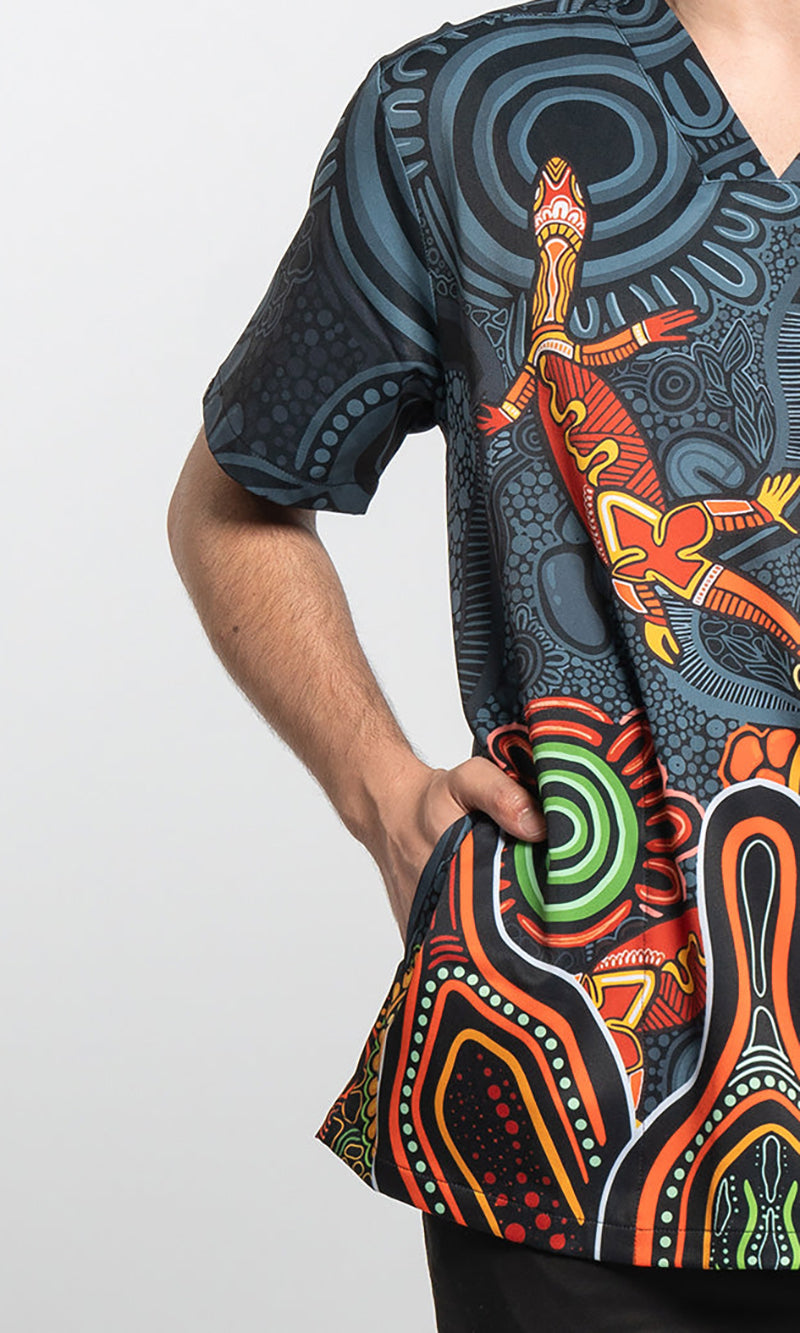 Aboriginal Art Unisex Three Pocket Scrub Top Proud & Deadly