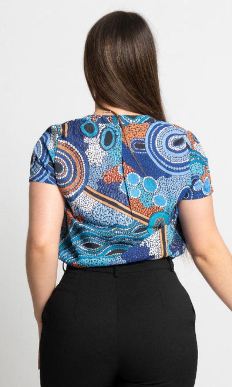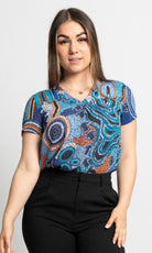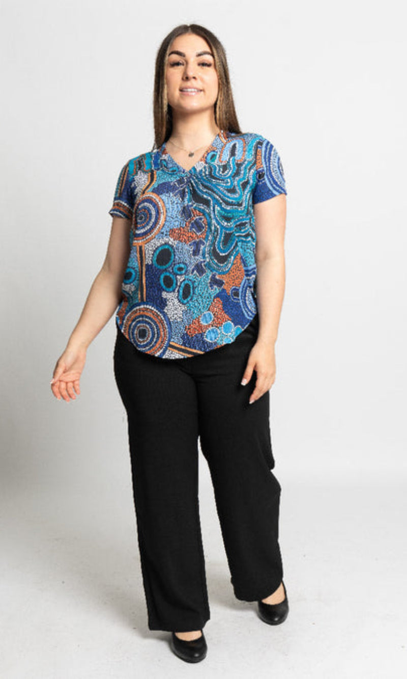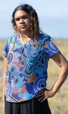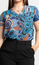 Aboriginal Art Women's V Neck Blouse Short Sleeve Calm Place