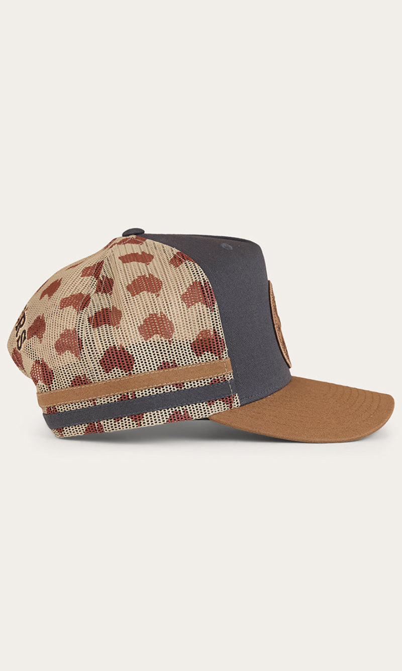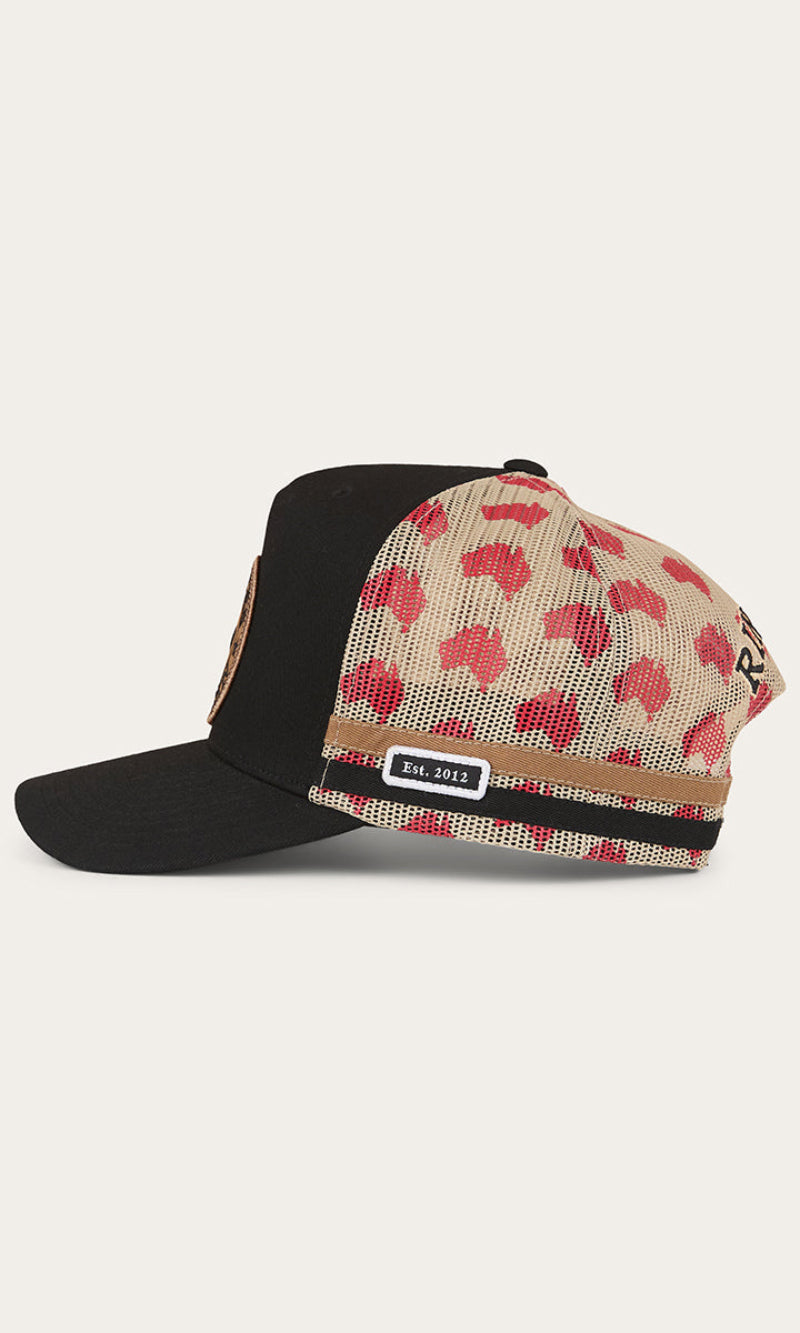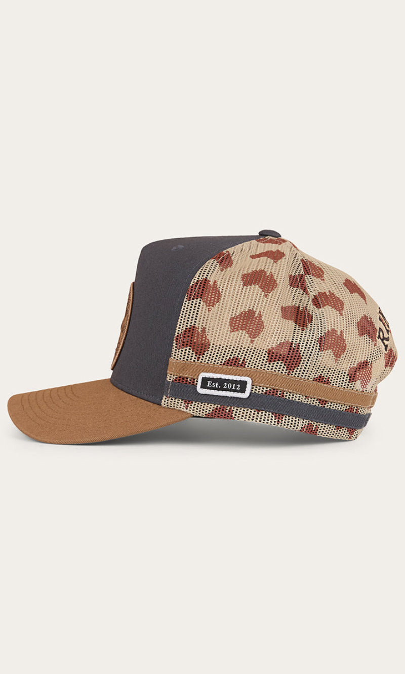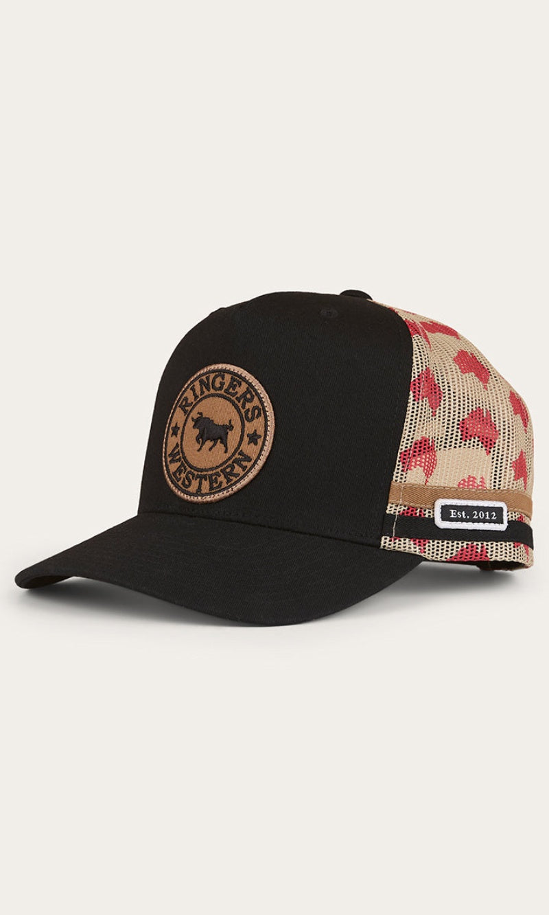 This essential deep fitting trucker cap has been created from cotton twill fabric and polyester mesh, making it ideal for the Australian climate. A woven Ringers Western badge takes pride of place on the front of this cap, capturing the brands rugged heritage, while twin side stripes are a cohesive addition. The adjustable snapback allows for a customisable fit, ensuring this cap is as comfortable as it is stylish. Printed polyester mesh panels are a patriotic touch, a tribute to our beautiful country.